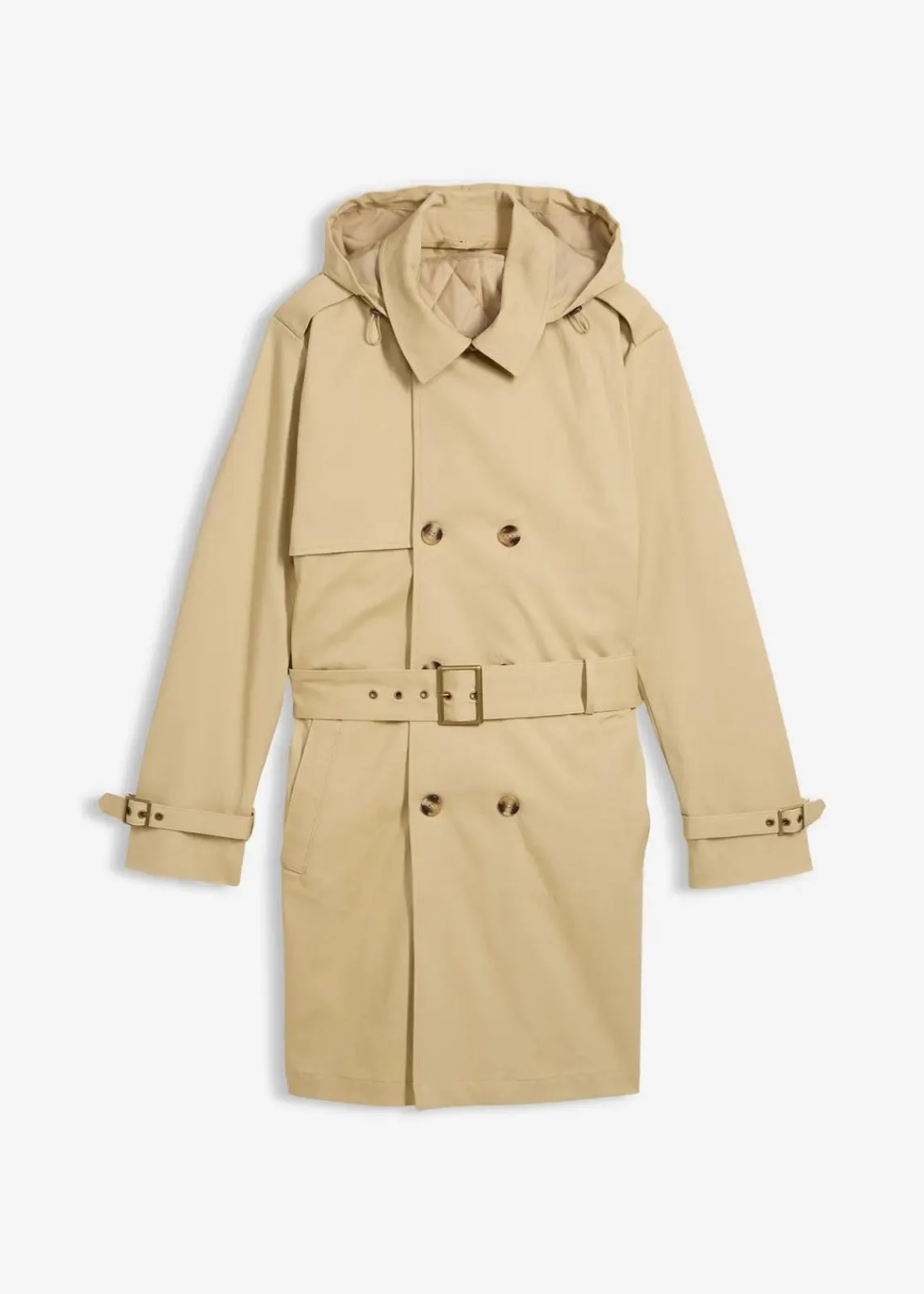 Der perfekte Übergangsmantel: mit einem speziell ausgerüsteten Baumwoll-Oberstoff ist der Trenchcoat wasserabweisend und hält leichten Herbstschauern stand, die Kapuze kann mit einem Reißverschluss abgetrennt werden und das leichte Steppfutter ist herausnehmbar. Ideal für die letzten Sonnentage und die ersten kalten Nächte.