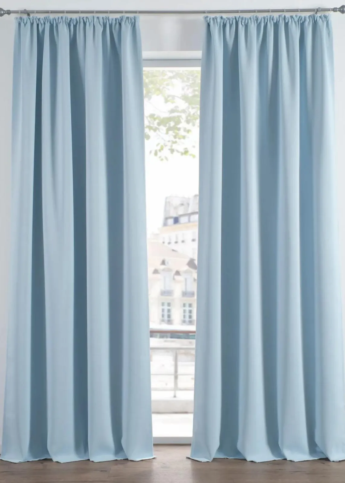 Dieser einfarbige Vorhang eignet sich Dank seiner extrem blickdichten und schweren Qualität (ca. 230gr/m²) hervorragend zur Abdunkelung von Räumen. So ermöglicht er als Licht- und Sonnenschutz auch tagsüber einen geruhsamen Schlaf und schützt vor unerwünschten Einblicken. Der Vorhang kann aufgrund seines schweren Stoffes energiesparend wirken: kalte Zugluft oder warme Sonnenstrahlen werden abgewehrt. Des Weiteren kann er schallschluckend wirken, d.h. Geräusche werden gedämpft. Der Vorhang ist von beiden Seiten gleichermaßen farbig und in vielen schönen Farben im 1er Pack verfügbar. Zur Auswahl stehen viele unterschiedliche Größen für kleine und bodentiefe Fenster oder Balkontüren. Den Vorhang gibt es auch in extra breit (siehe Größe 5 bis 8). Durch die Art der Verpackung entstehen Falten. Bitte bei Bedarf vor dem Aufhängen bügeln.
