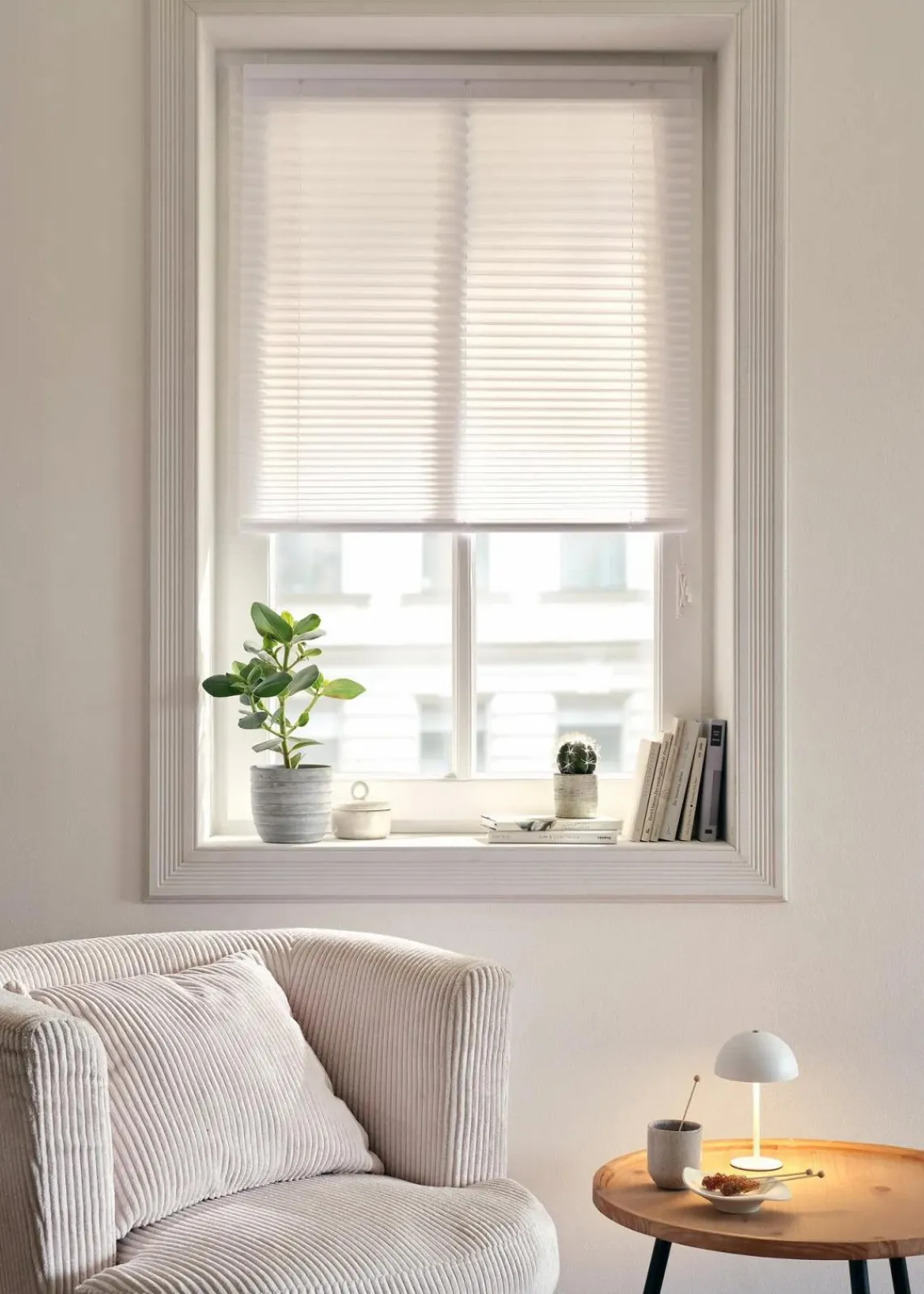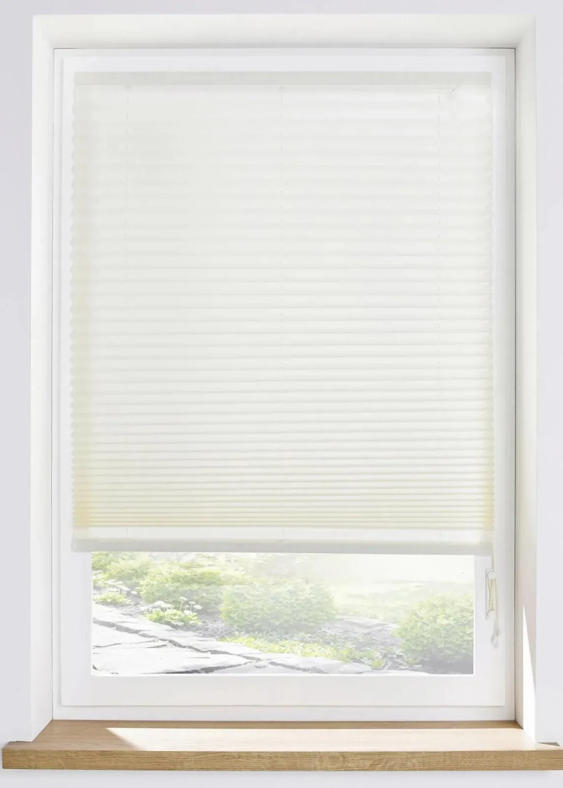 Blickdichtes Plissee mit cleverer Klettband-Anbringung: dieses wird oben auf dem Fensterrahmen geklebt. Das Gegenstück ist am Plissee. Kein Bohren & Schrauben! Ideal für Mietwohnungen. Das Plissee ist freihängend und somit nicht fest verspannt.