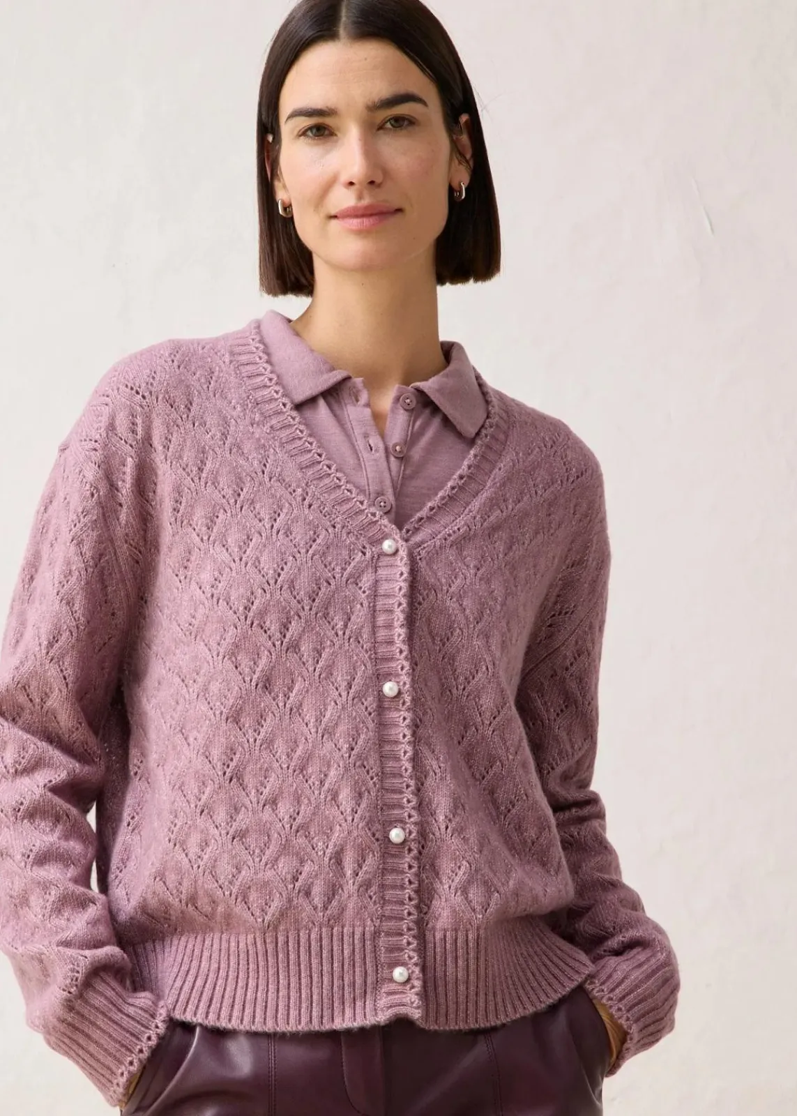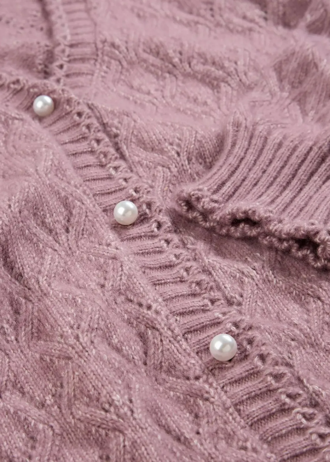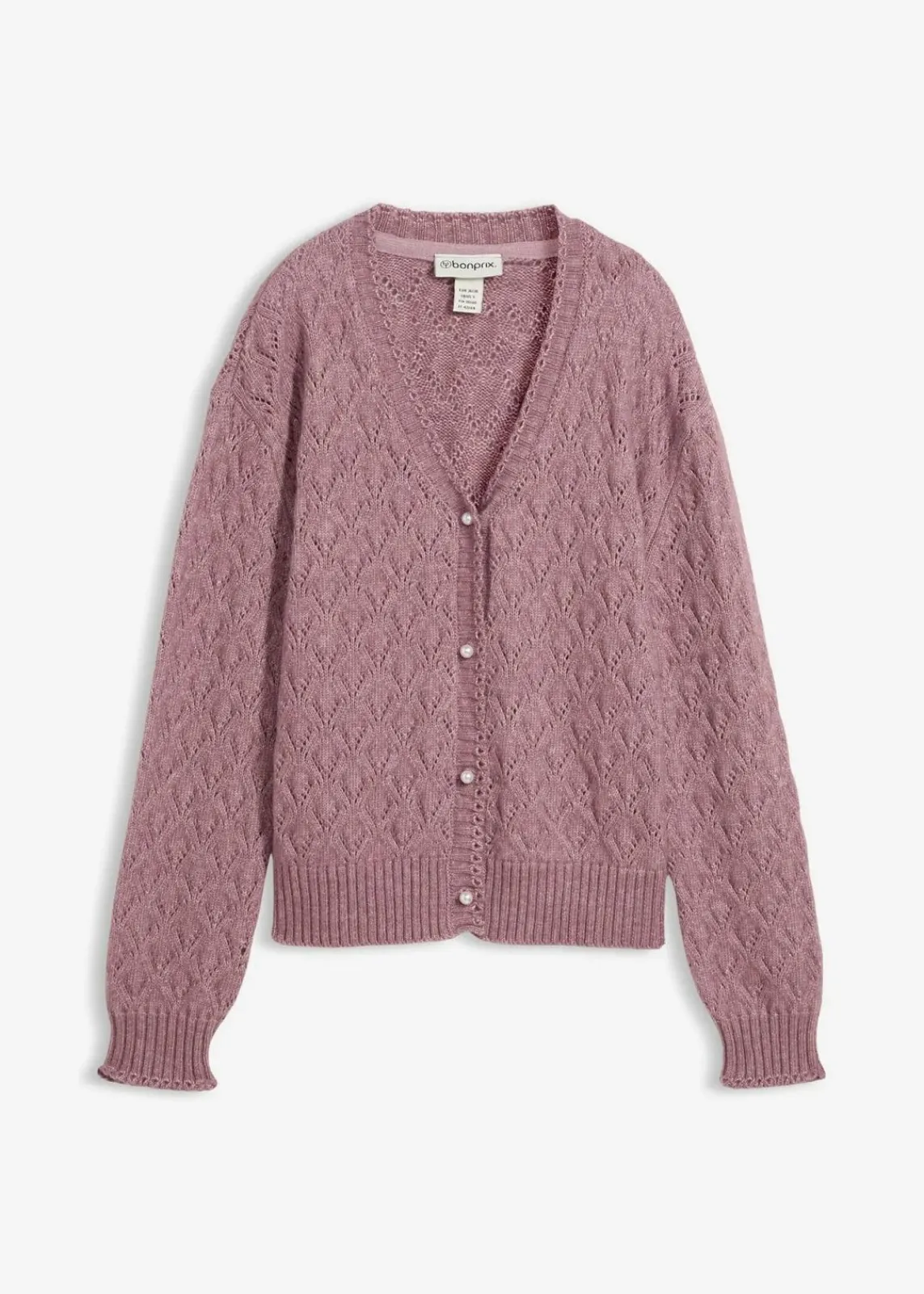 Ajour-Strickjacke mit hochwertigen Woll-Anteil