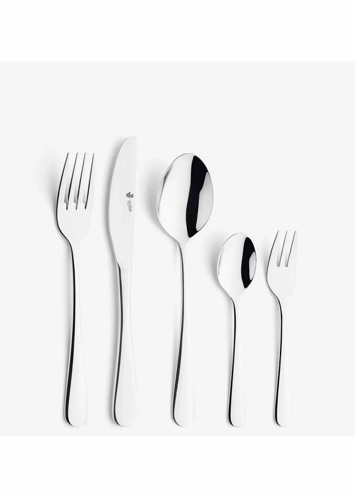 Das Besteck mit reichlich Zusatzteilen. Es sorgt für Harmonie und Eleganz an dem gedeckten Tisch. Das harmonische, formschöne Besteck mit seinen weichen, runden Linien machen es zum perfekten Allrounder. Ideal für jede Mahlzeit. Bestehend aus 12 Kaffeelöffel, 12 Kuchengabeln, 12 Menügabeln, 12 Menülöffel, 12 Menümesser, 1 Sahnelöffel, 1 Saucenlöffel, 1 Tortenheber, 1 Zuckerlöffel, 2 Fleischgabeln, 2 Servierlöffel.
