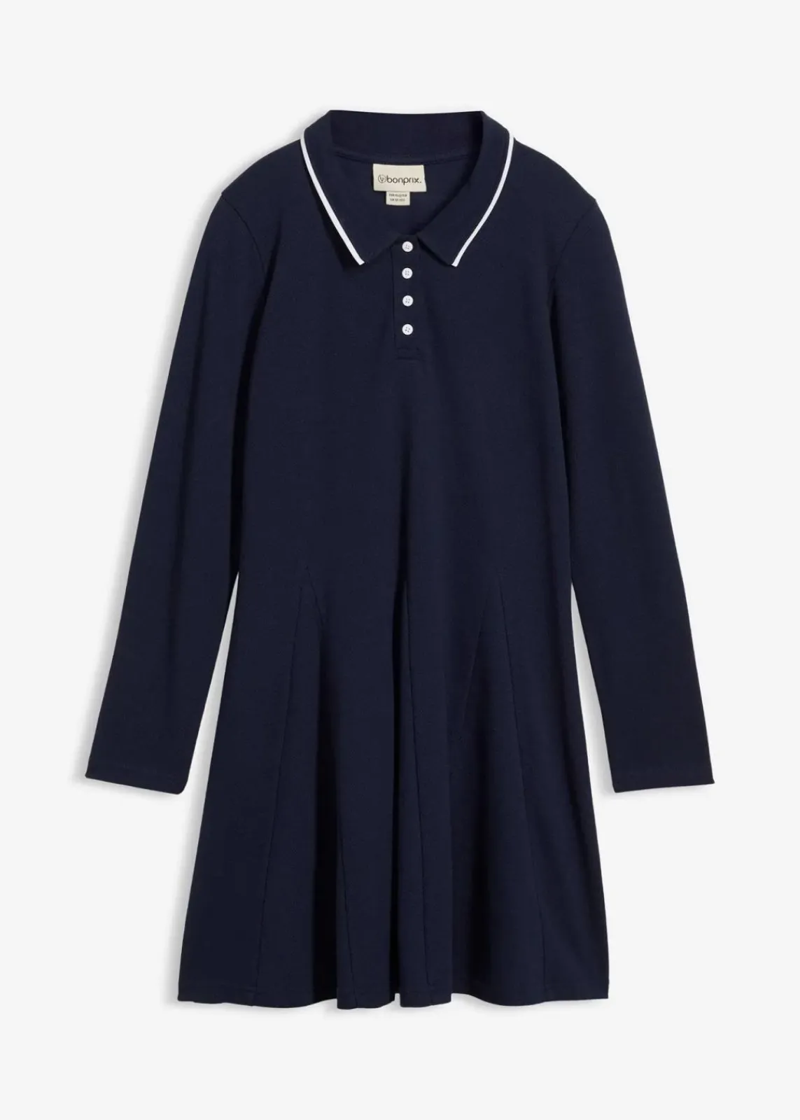Langärmliges Shirtkleid für Mädchen mit Kragen aus reiner Bio-Baumwolle