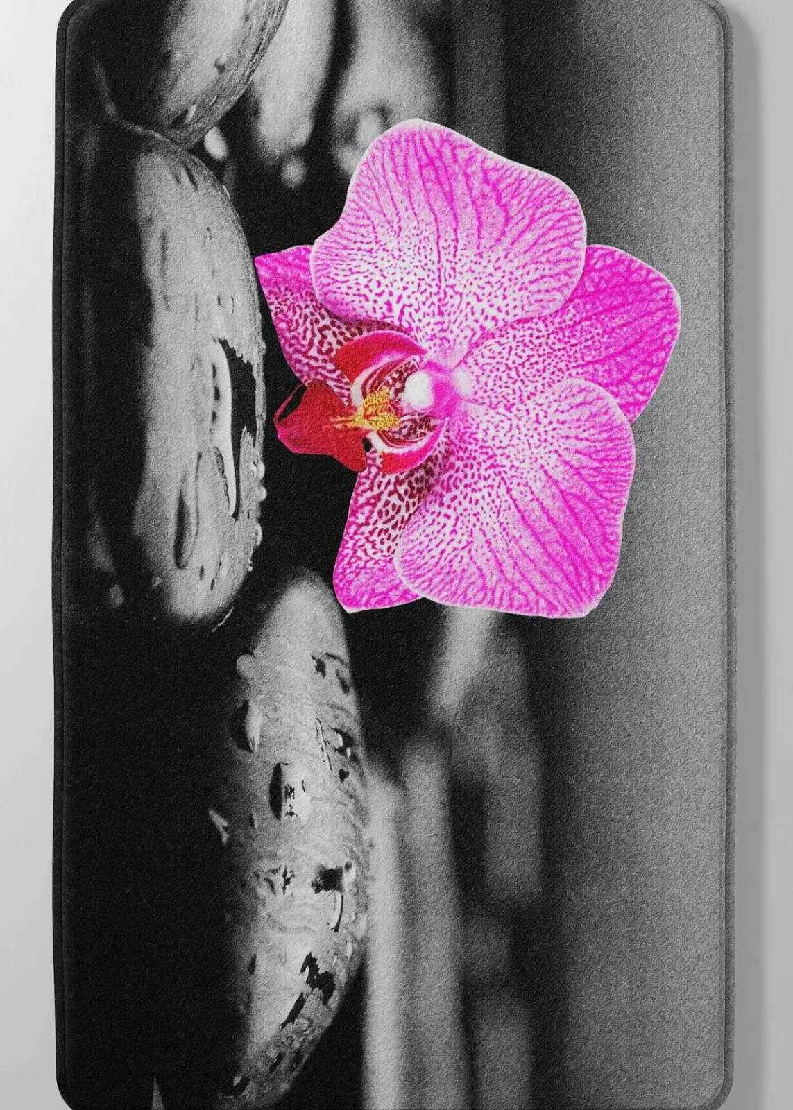 Mit der bedruckten Badgarnitur wirkt jedes Bad wie eine Wellnessoase , superweich und schnell trocknend, mit Memory Schaum. Extrem saugfähig
