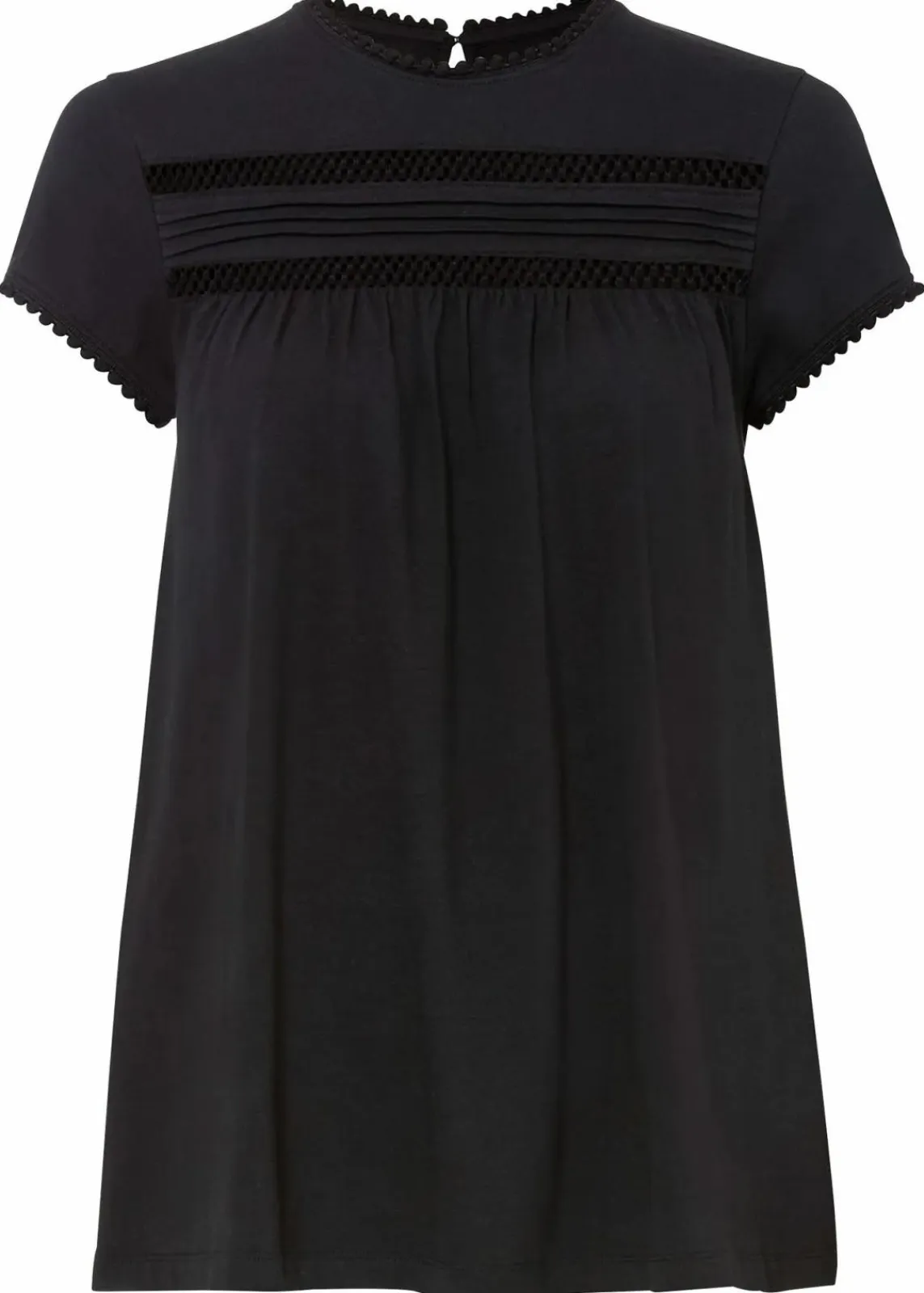 Modernes Baumwollshirt mit Spitzeneinsatz und kurzem Arm