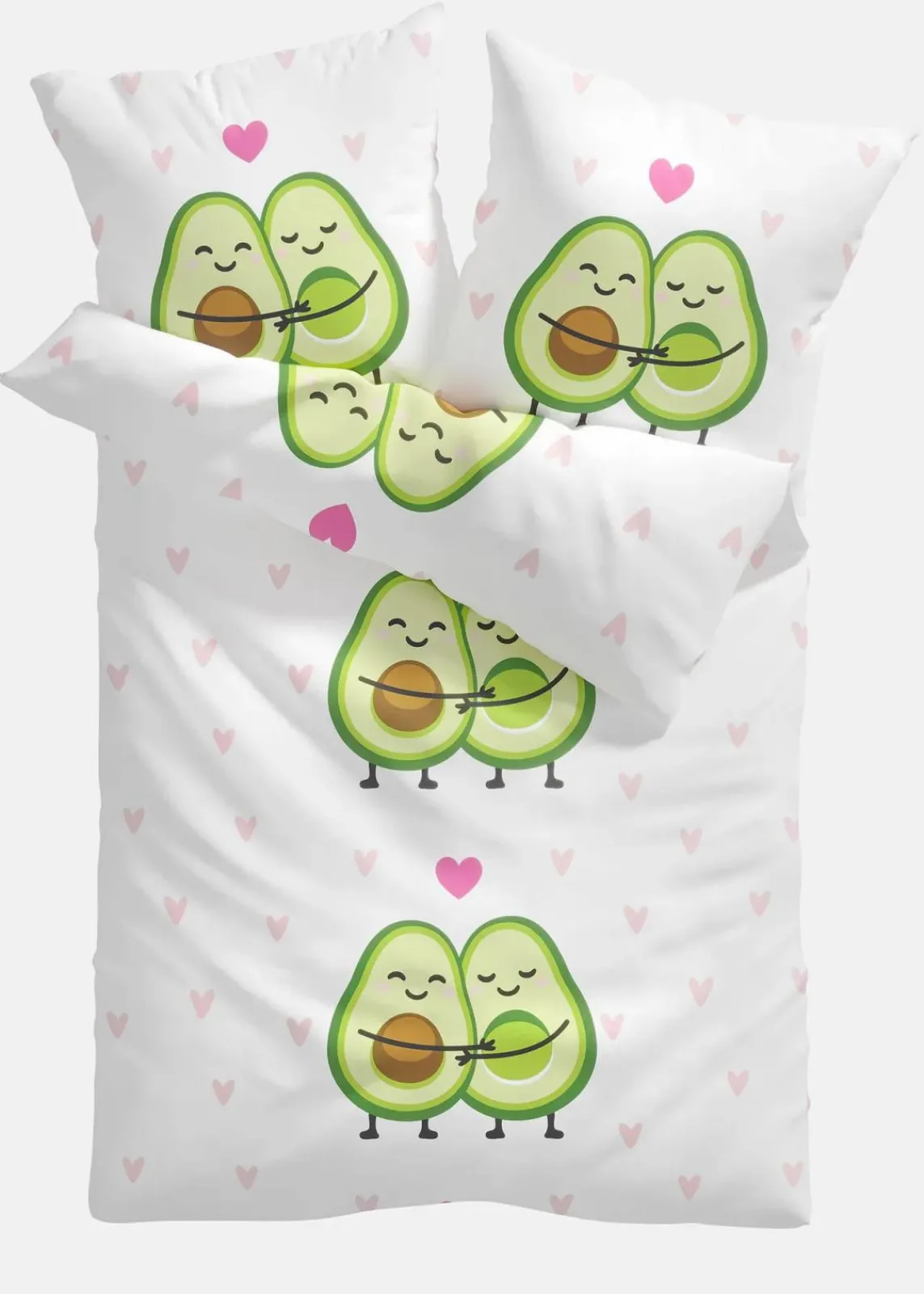 Bettwäsche mit verliebten Avocado Pärchen und Herzen