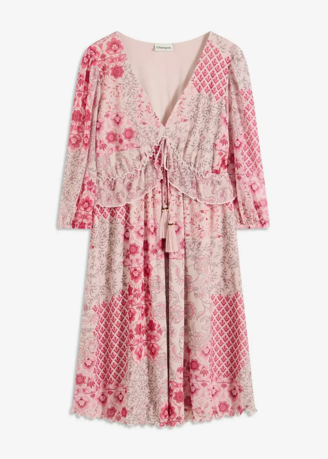 feminines Mesh-Tunika-Kleid mit kleinem Volant und dekorativem Bindeband vorne in der Taille
