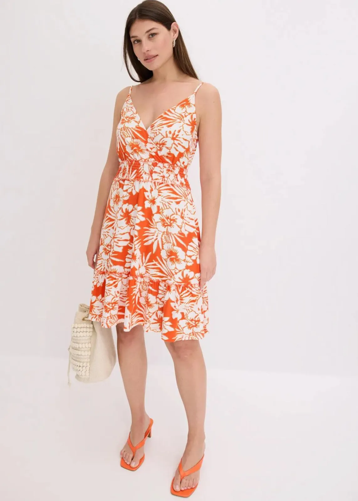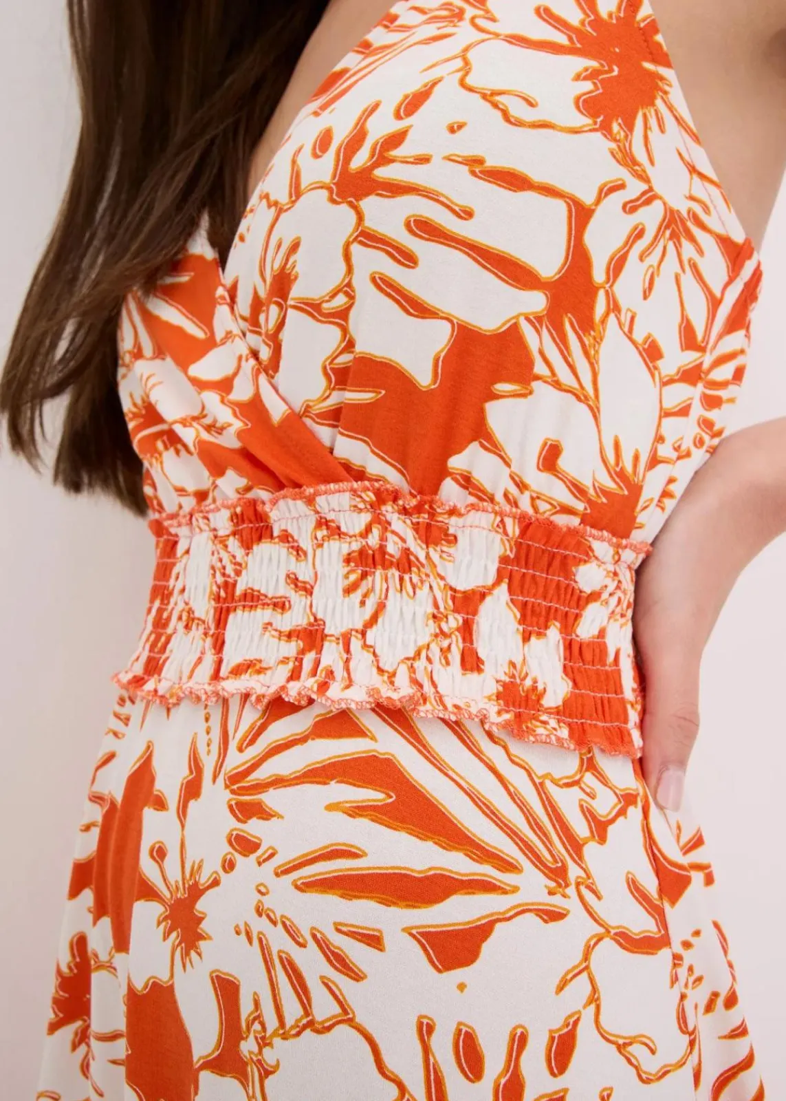 floral bedrucktes Spaghetti-Träger-Kleid mit Smok-Detail in der Taille