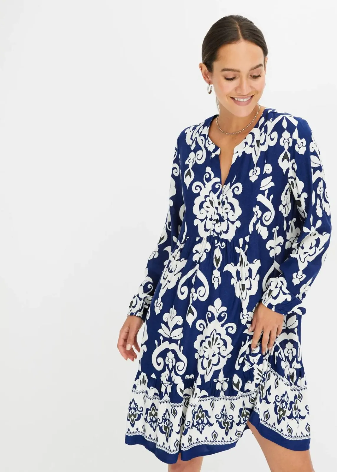Bedrucktes Tunika-Kleid aus nachhaltiger Viskose mit schönem Muster