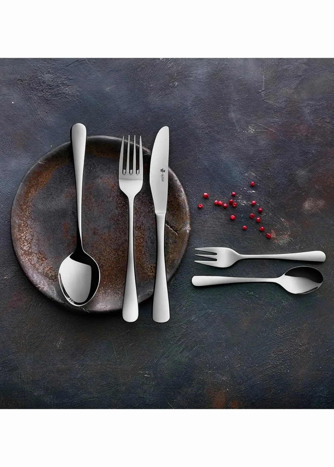 Das Besteck sorgt für Harmonie und Eleganz an dem gedeckten Tisch. Das harmonische, formschöne Besteck mit seinen weichen, runden Linien machen es zum perfekten Allrounder. Ideal für jede Mahlzeit. Bestehend aus 6 Kaffeelöffel, 6 Menügabeln, 6 Menülöffel, 6 Menümesser.