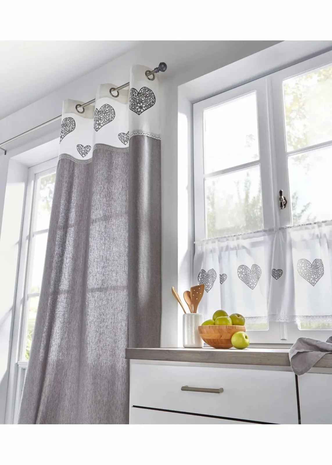 diese Küchengardine vereint einezarte Spitzenkante mit verzierten Herzen!