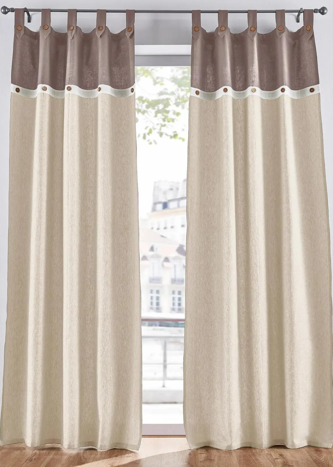 Der Vorhang bringt ein natürliches Wohnambiente in Deine Räume. Die Farbstellung ist dezent gehalten und somit zu vielen Einrichtungsstilen passend. Ein besonderes Detail sind die dekorativen aufgenähten Knöpfe in Holz-Optik, die die natürliche Ausstrahlung des Vorhangs hervorragend abrunden und ihn einfach perfekt machen für alle, die die Natürlichkeit lieben und Wert auf gute Qualität legen.