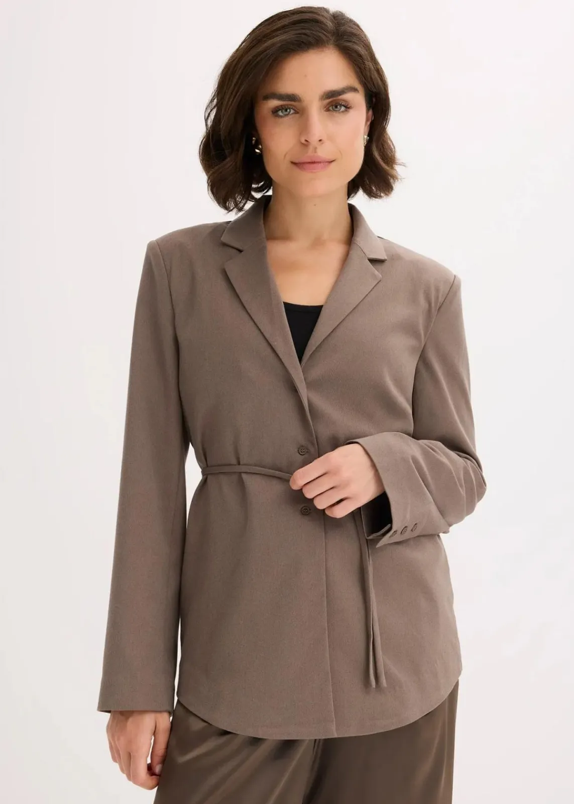 Locker fallender Blazer mit Reverkragen und Bindegürtel