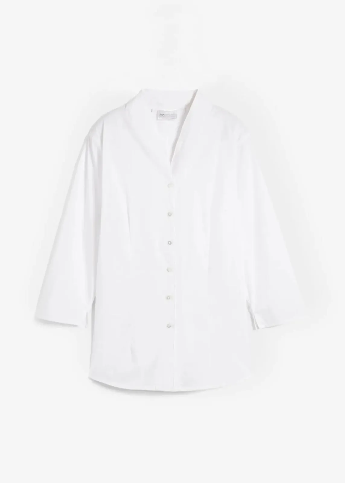 Stilvoll und feminin wirkt diese Bluse mit Schalkragen durch das leicht figurbetonte Design und das weich fließende Material. Der dezente V-Ausschnitt mit Stehkragen unterstreicht die exklusive Optik des Modells mit seitlich abgerundetem Saum.Interessante Details sind die kleinen Seitenschlitze am Saum der 3/4-Ärmel. Die Bluse der Marke bpc selection wird vorne mit einer dekorativen Knopfleiste geschlossen.
