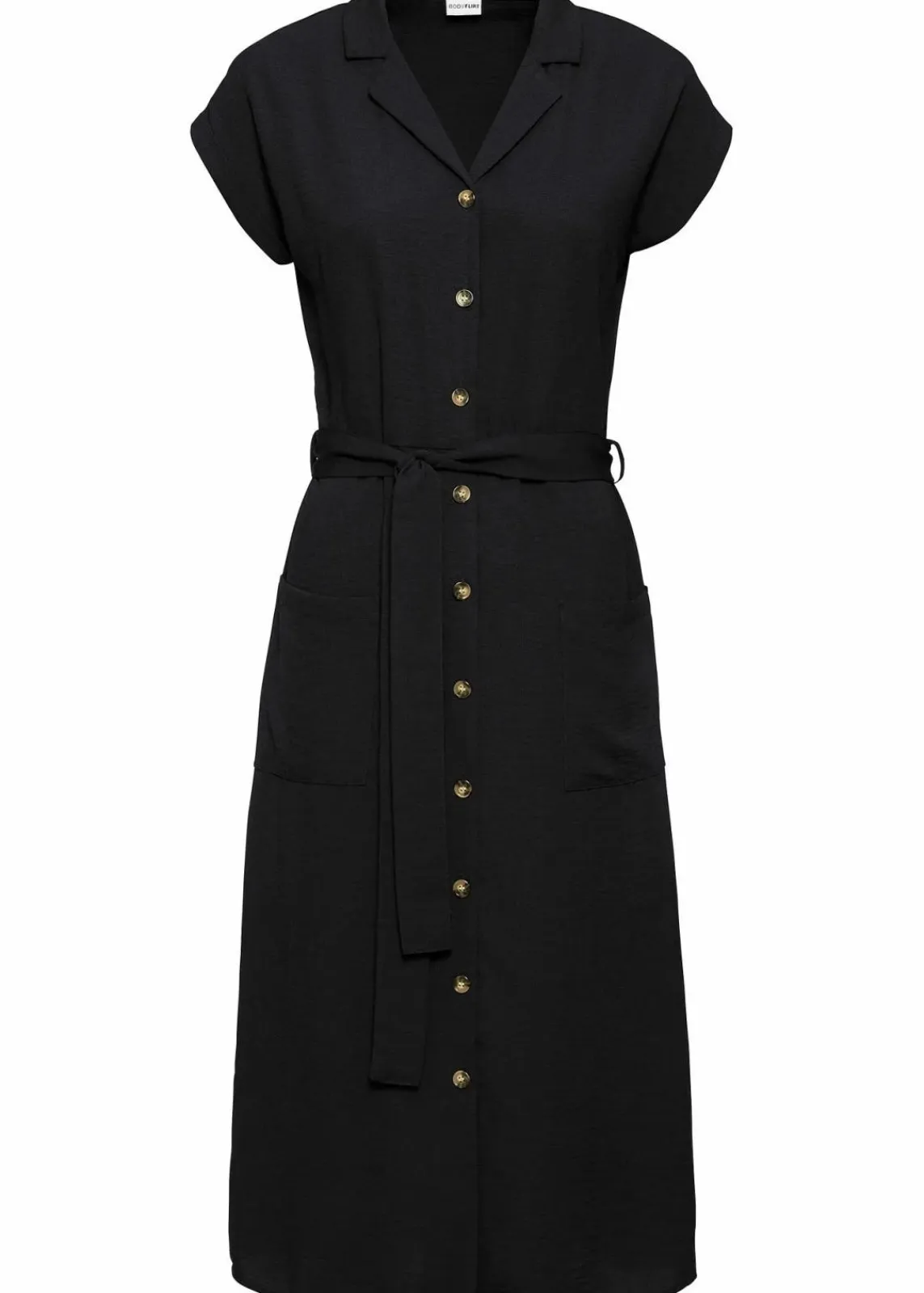 Luftiges Blusenkleid mit Taschen und Bindeband um die Taille.