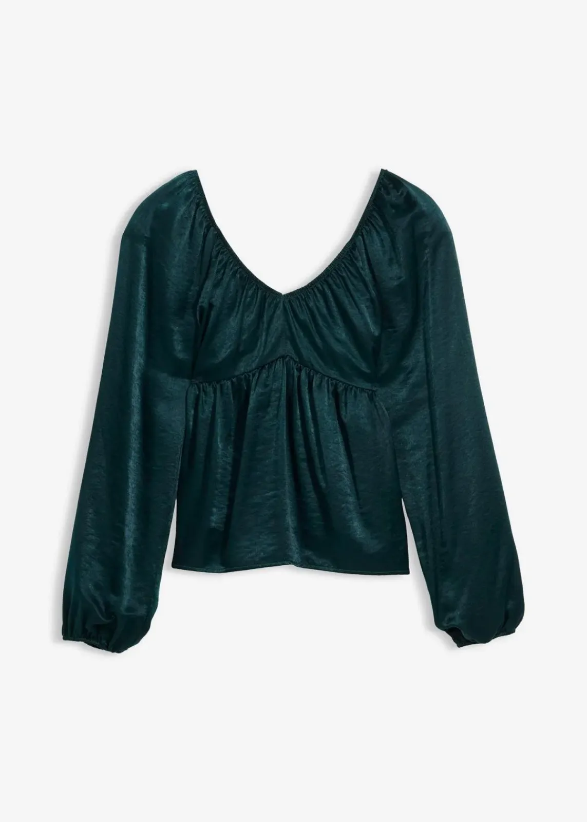 Modisches Blusenshirt mit V-Ausschnitt und Raffungen