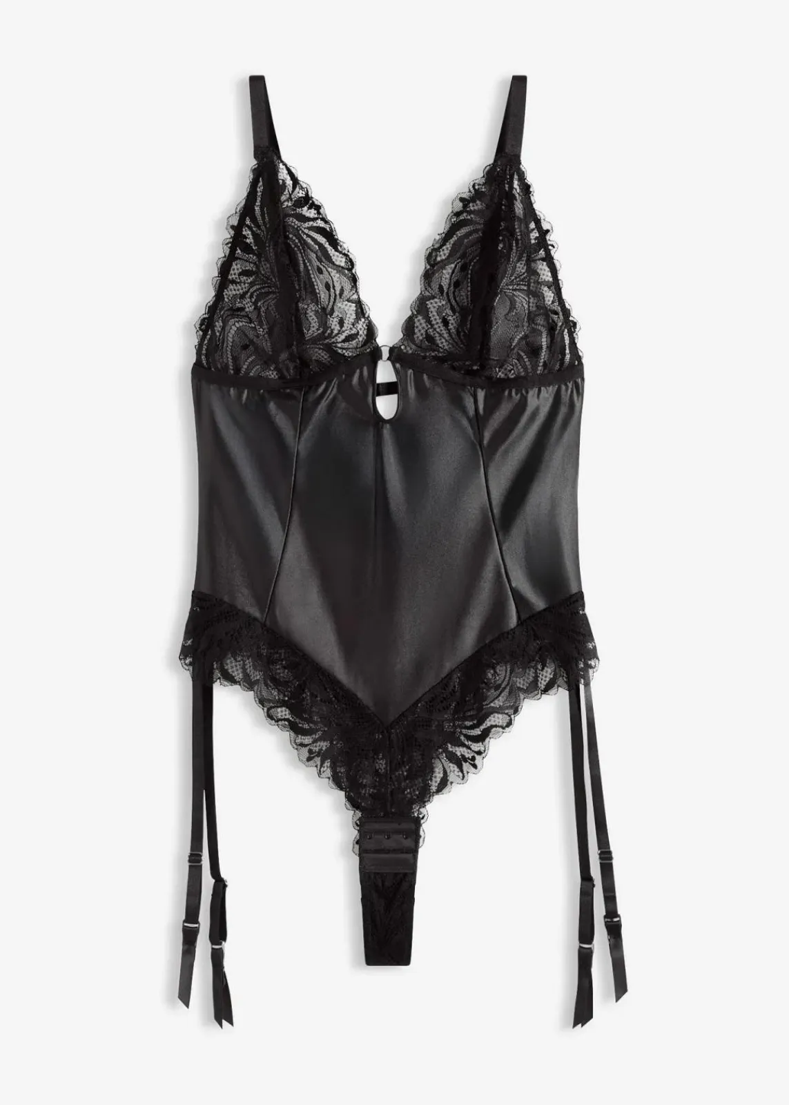 Body mit Wetlook und abnehmbaren Strapshalter.