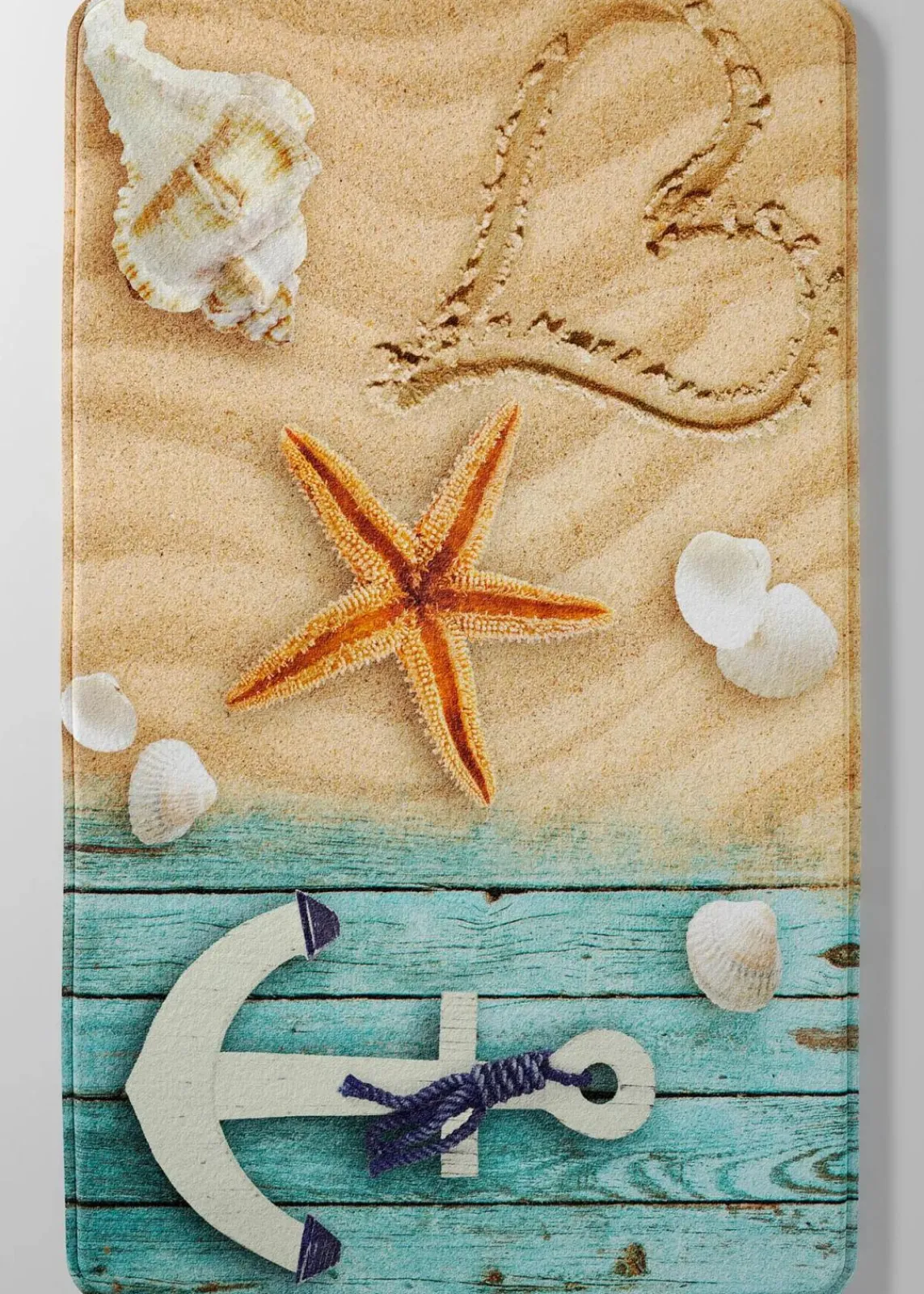 Badgarnitur mit maritimen Motiven bringt Urlaubsfeeling in Ihr Bad, superweich und schnell trocknend, mit Memory-Schaum gefüllt. Extrem saugfähig, rutschhemmend beschichtet
