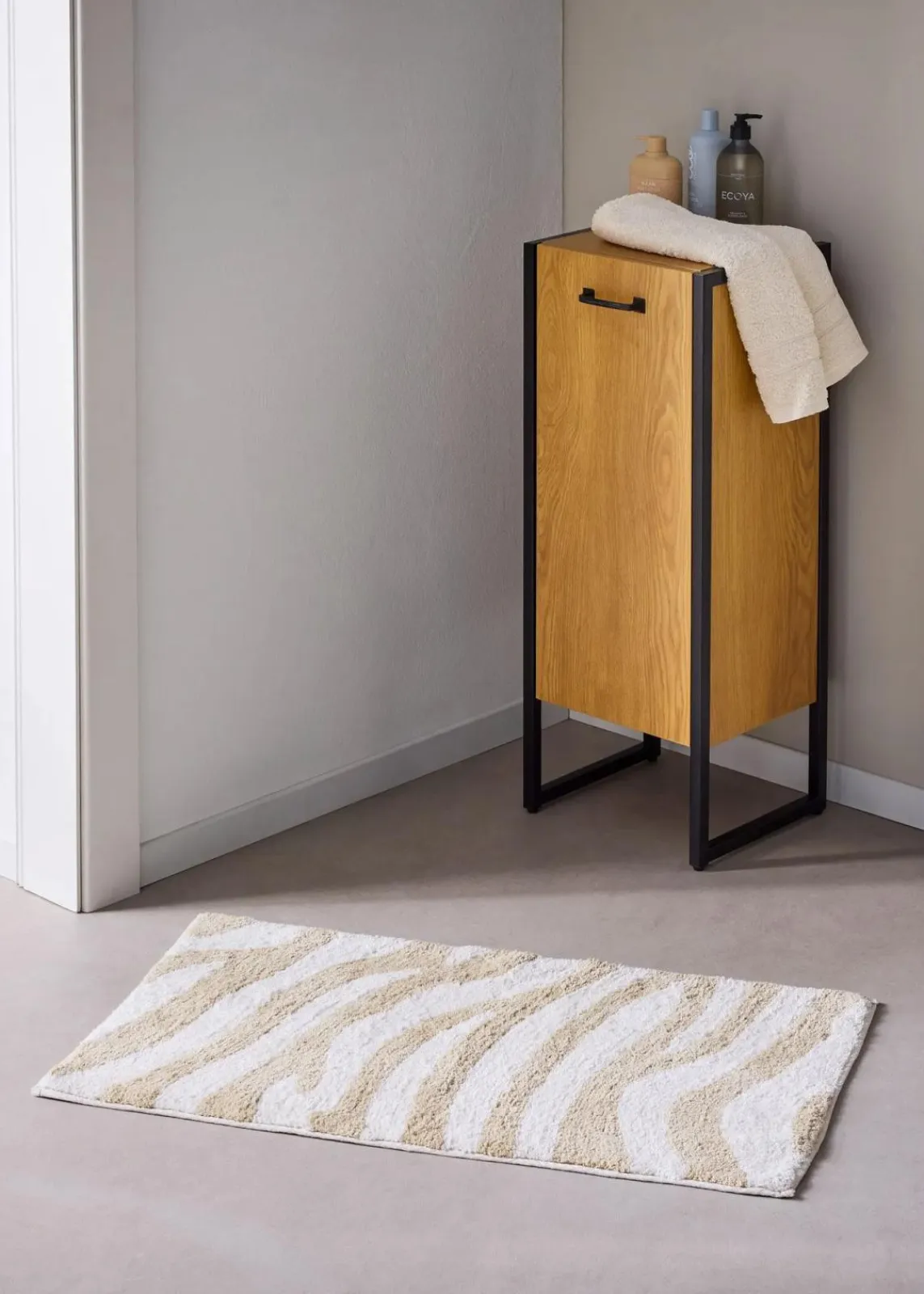 Getuftete Badematte, waschbar 30°C, Rückseite rutschhemmend, Fußbodenheizung geeignet.