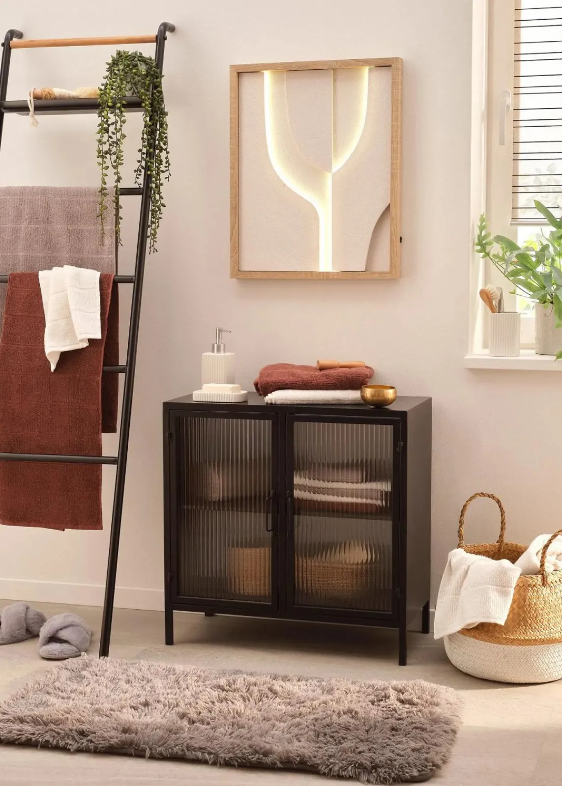 Mit diesem Waschbeckenunterschrank bringst Du Ordnung und Stil in Dein Badezimmer. Die moderne Glasfront sorgt für einen urbanen Look und lässt Deine Lieblingsprodukte stilvoll wirken. Du nutzt den Stauraum für Handtücher, Kosmetik und alles, was Du griffbereit haben möchtest. So wird Dein Bad zum Wohlfühlort, der zu Deinem Lifestyle passt.