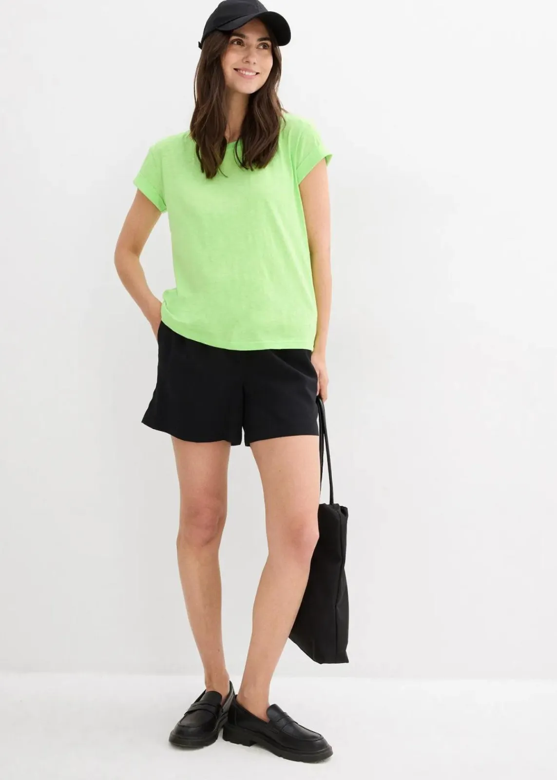 Das Kurzarm-Boxyshirt der Marke bpc gibt sich als vielseitiges Basic und trägt sich durch seine lockere Passform besonders angenehm. Das weiche Material aus Flammgarn-Jersey fühlt sich bequem auf der Haut an und verleiht dem Shirt seine leicht melierte Optik. Das legere Design mit kurzen Ärmeln und Rundhals passt immer gut und schmeichelt der Figur.Zu einer Stretchhose kombiniert, wird das Boxyshirt zum lässigen Outfit für Freizeit und Wochenende.