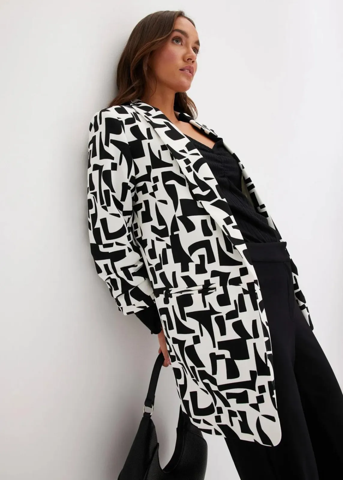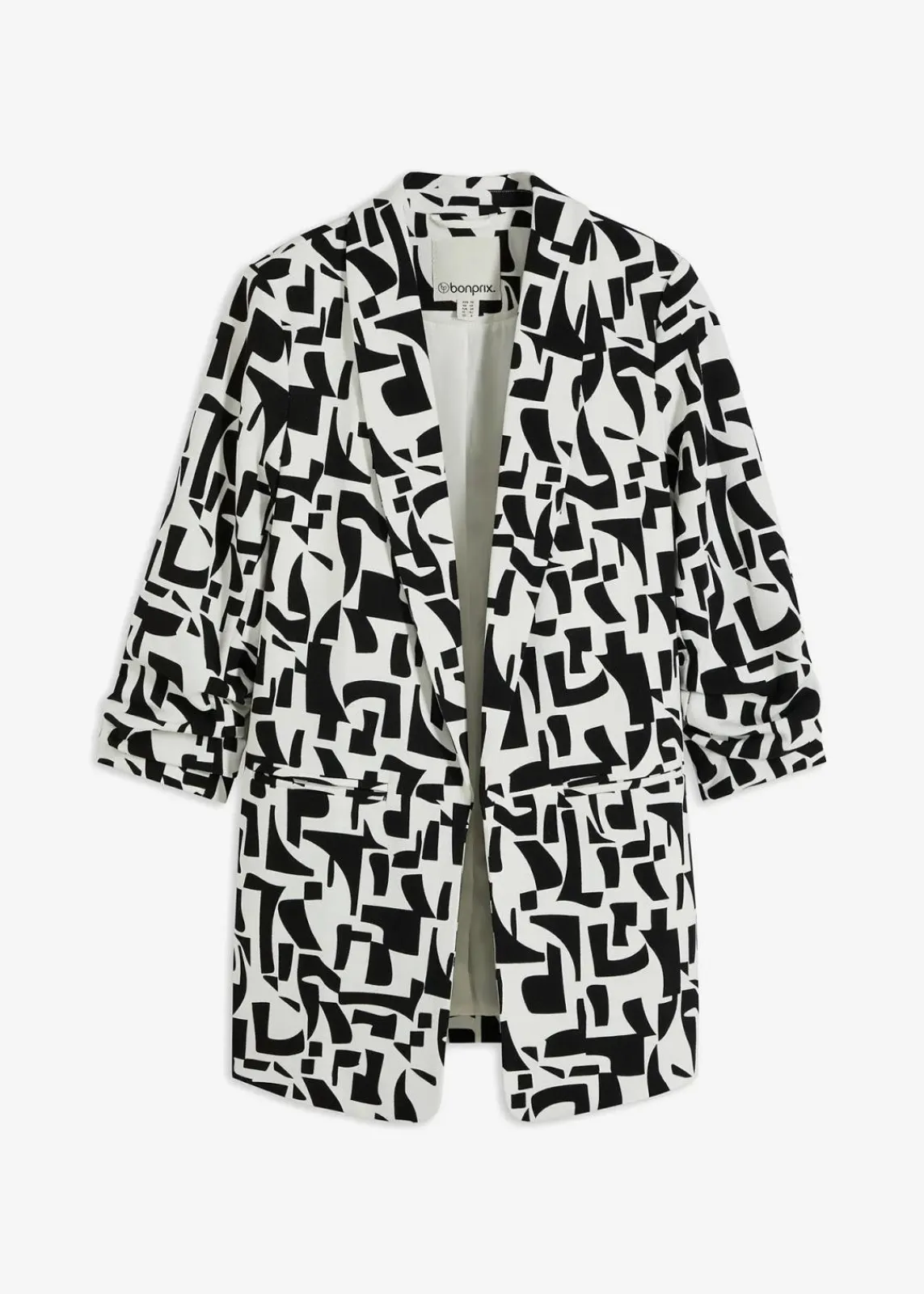 graphisch bedruckter Longblazer mit gerafften 3/4-Ärmeln