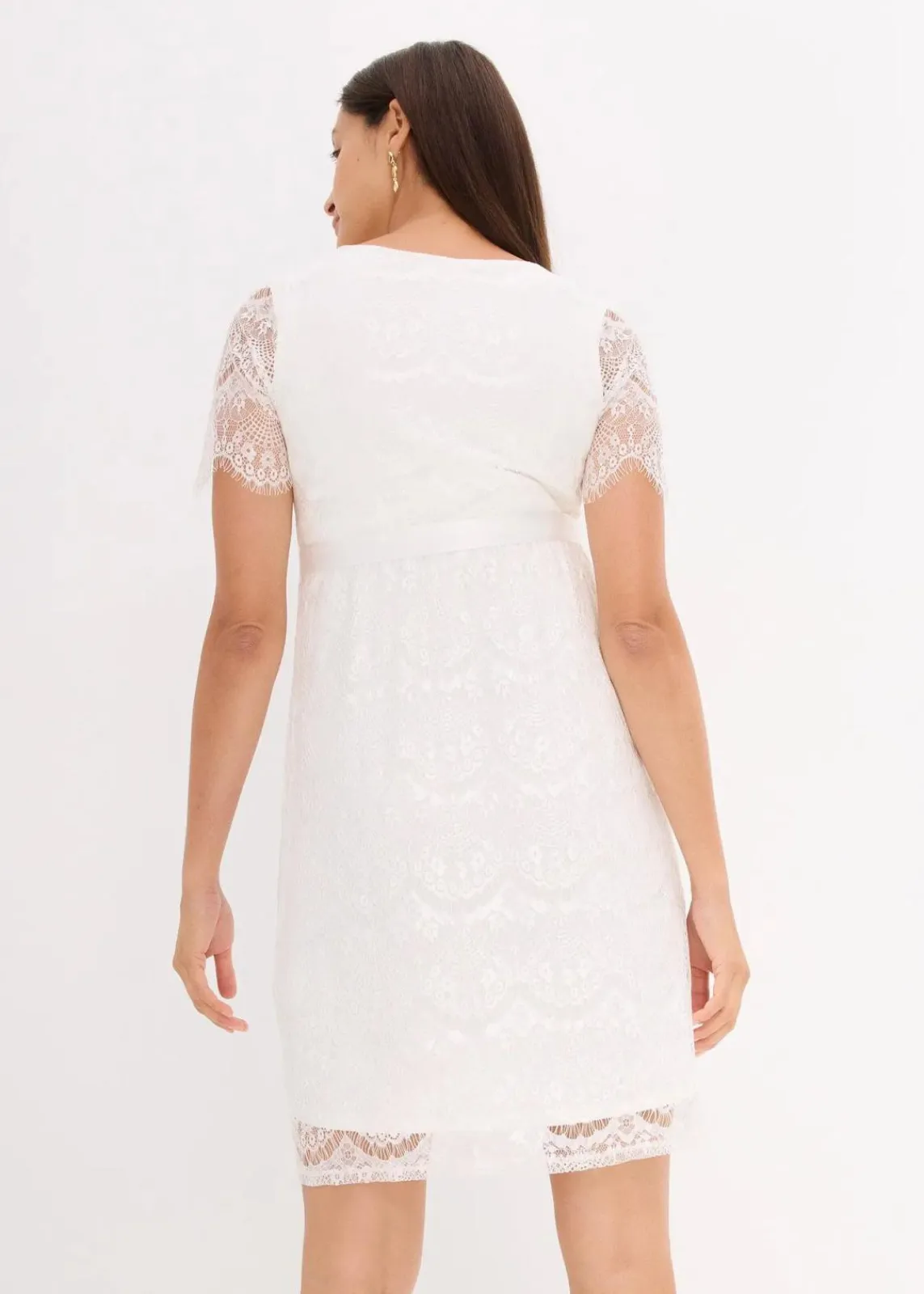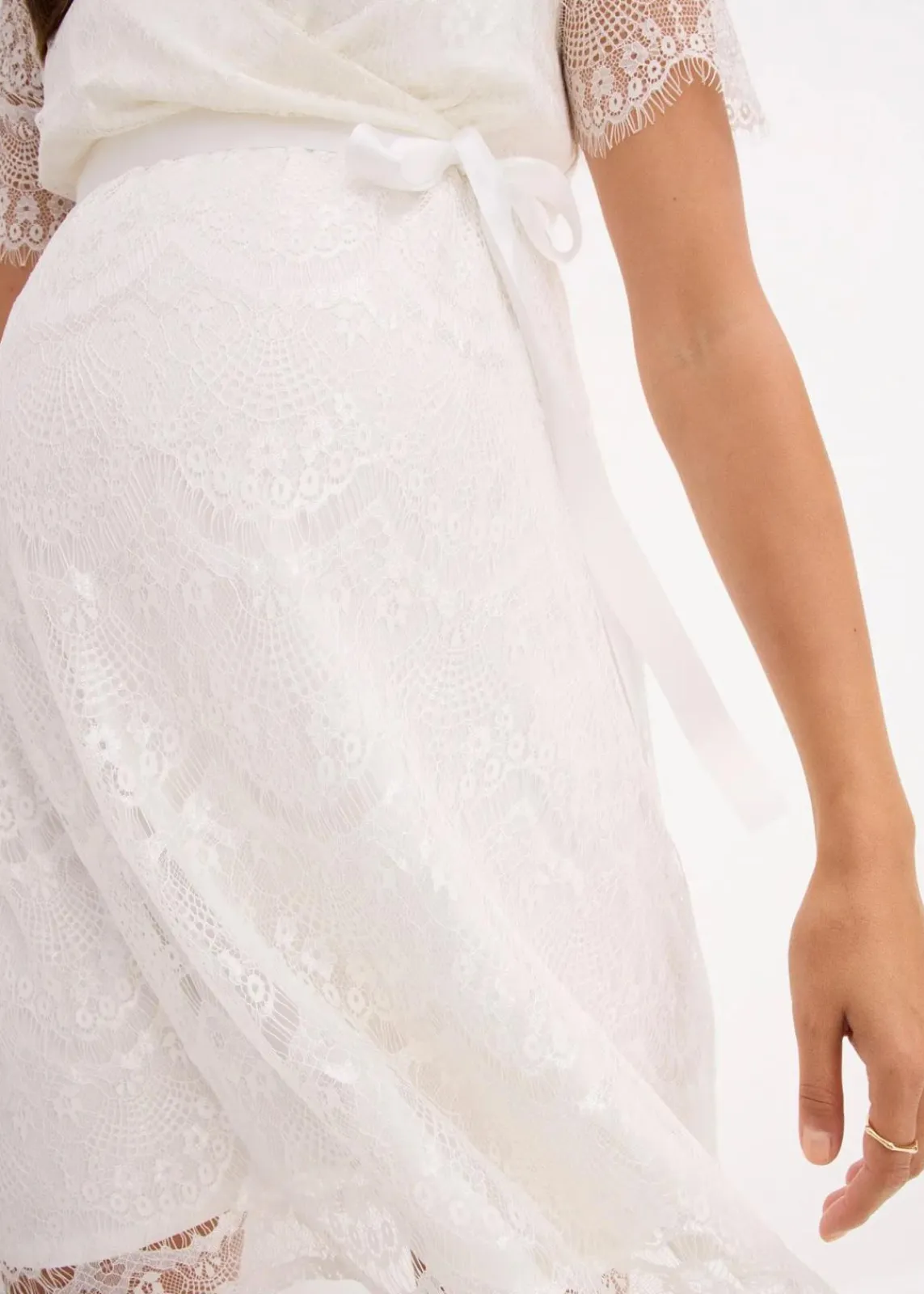 Elegantes Umstandshochzeitskleid aus weicher dehnbarer Spitze