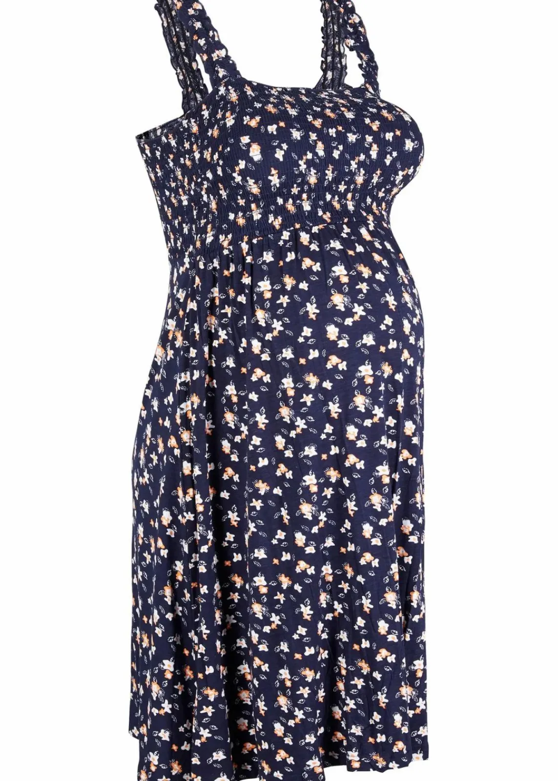 Bedrucktes Kleid aus weicher Viskose mit etwas Stretch für einen angenehmes Tragegefühl. Mit rechteckigem Ausschnitt und breiten Trägern. Das Oberteil und die Träger sind mit elastischem Smock verarbeitet. Das bequeme Sommerkleid hat eine kniefreie Länge und einen bedruckten Rock in A-Linie, für eine schmeichelhafte Silhouette.