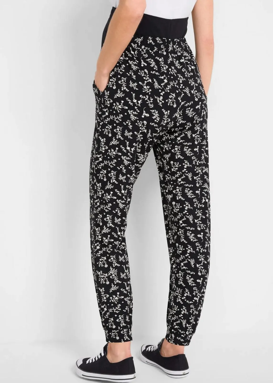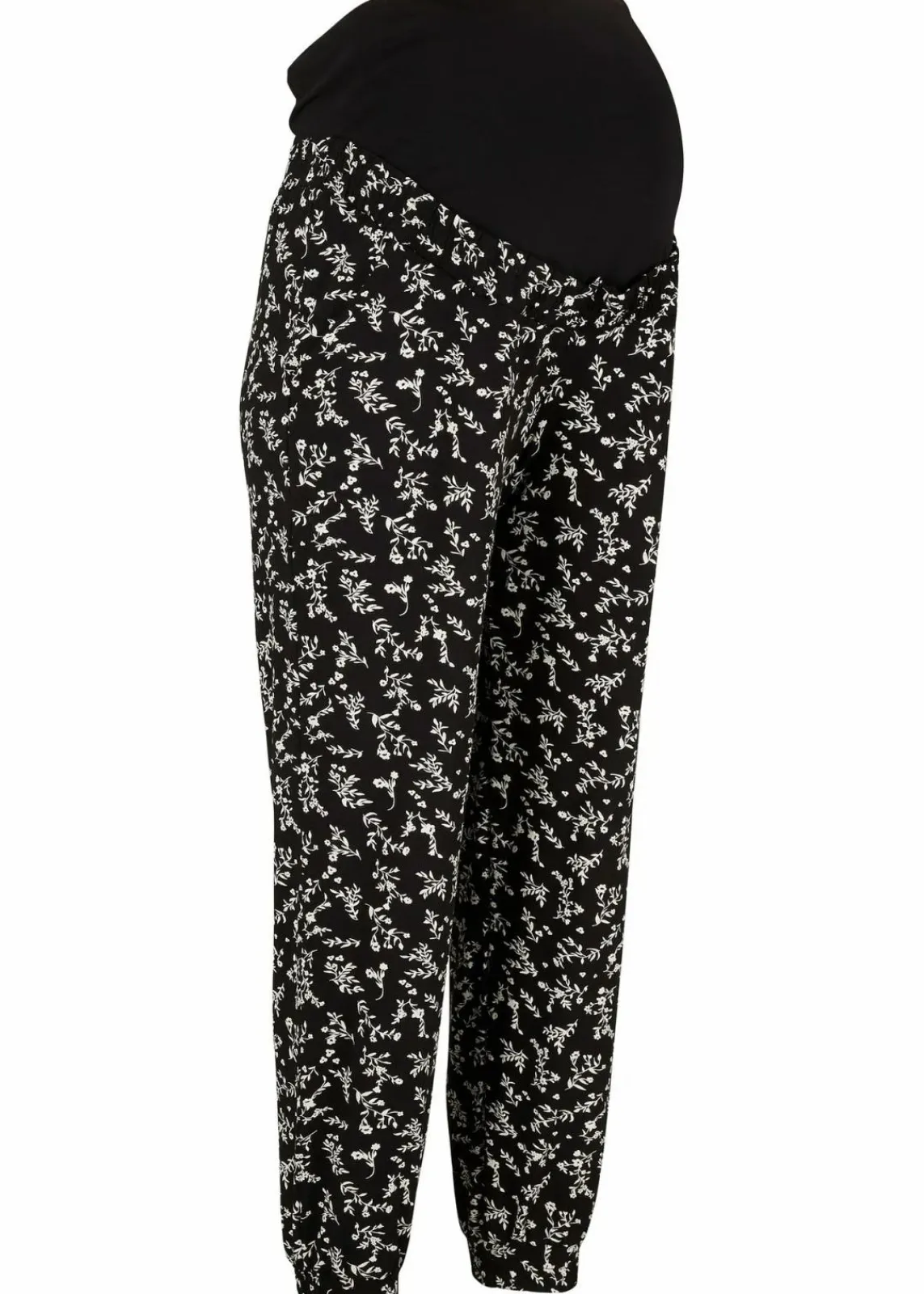 Diese bequeme Umstandshose lässt sich durch das elastische Bauchband während der gesamten Schwangerschaft tragen. Durch den Allover-Blumenprint und den angenehmen Stoff ist die Hose ideal für die warmen Tage geeignet.