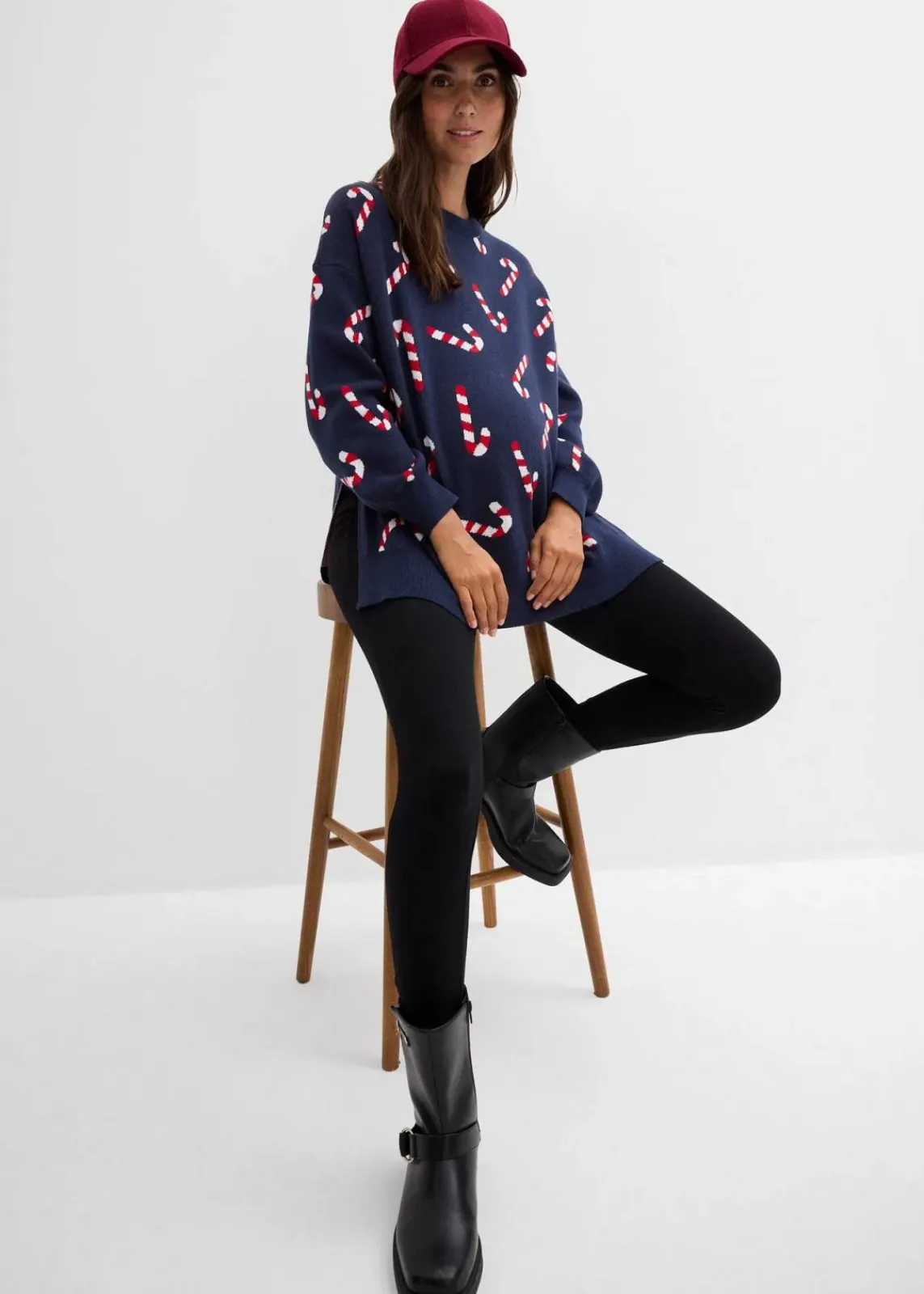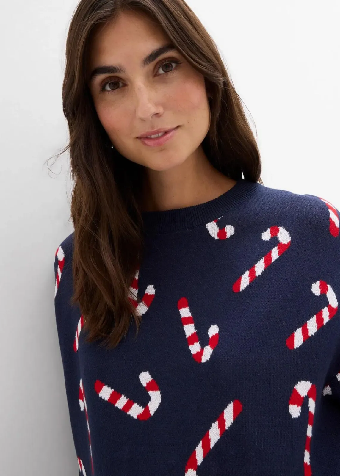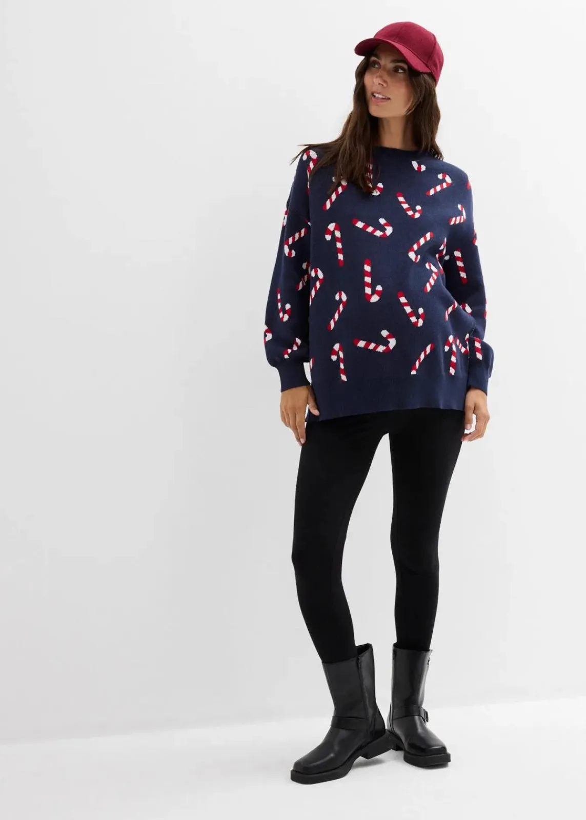 Dieser Umstandspullover mit fröhlichem Zuckerstangen-Print bringt festliche Stimmung in deine Garderobe. Der Regular Fit und die seitlichen Stillschlitze bieten Komfort und Funktion während der Schwangerschaft und Stillzeit. Mit Rundhalsausschnitt, langen Ärmeln und geradem Saum ist er ein gemütlicher Begleiter für die Winterzeit.