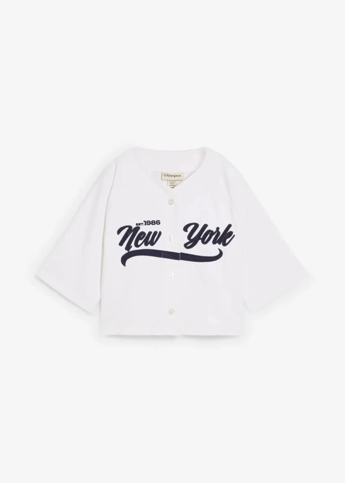 Geknöpftes weites Sweatshirt mit Stickerei und halben Ärmeln