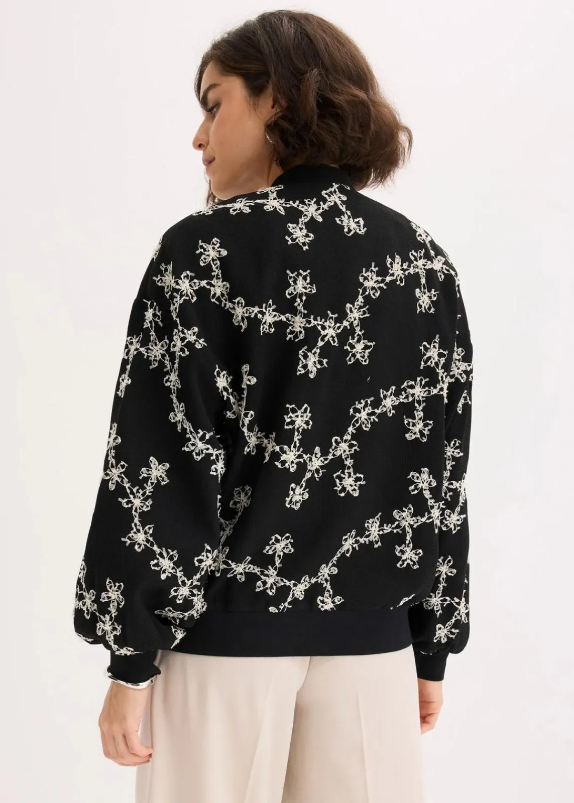 modischer Blouson mit floraler Stickerei und Reißverschluss vorne