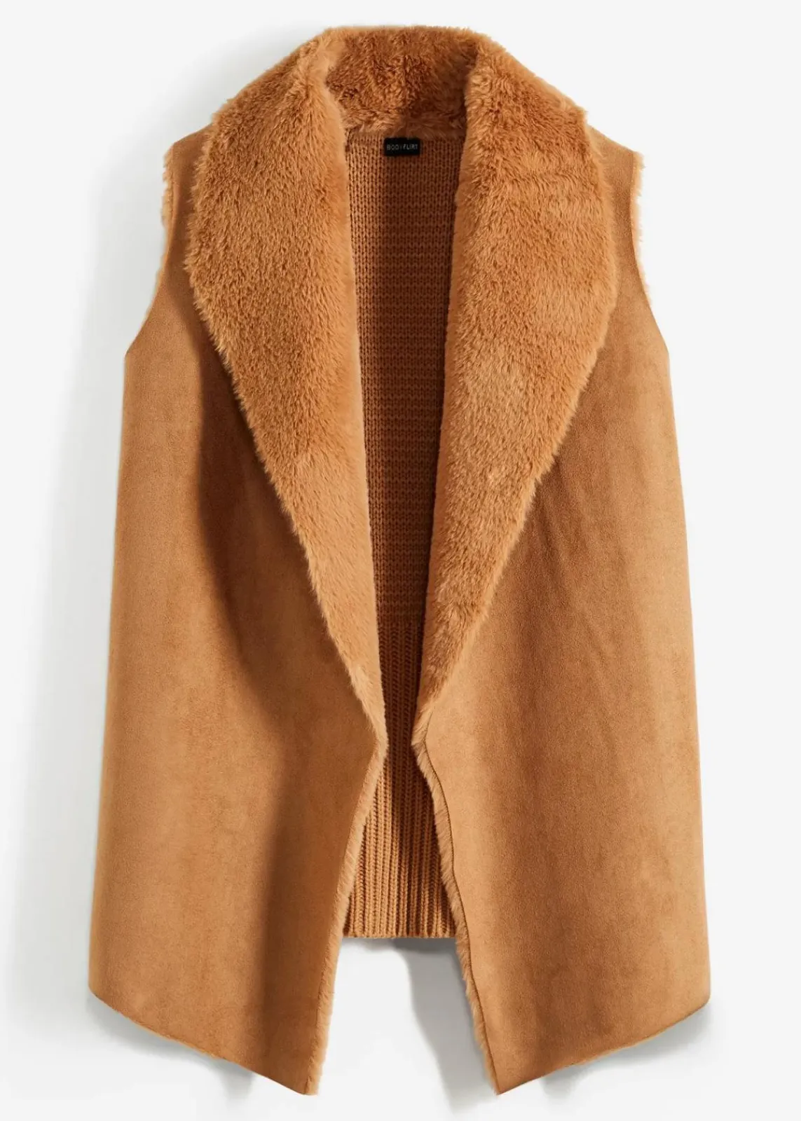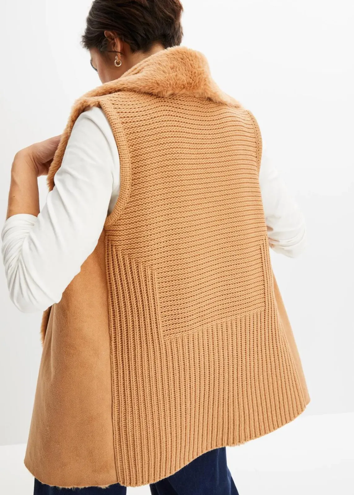 Feminine Lederimitat-Weste mit Strickeinsatz