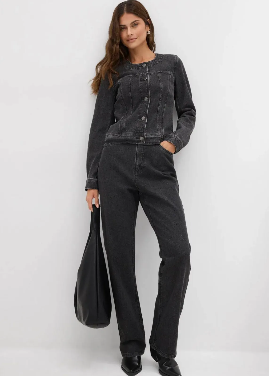 Kastige Jeansjacke mit Strass