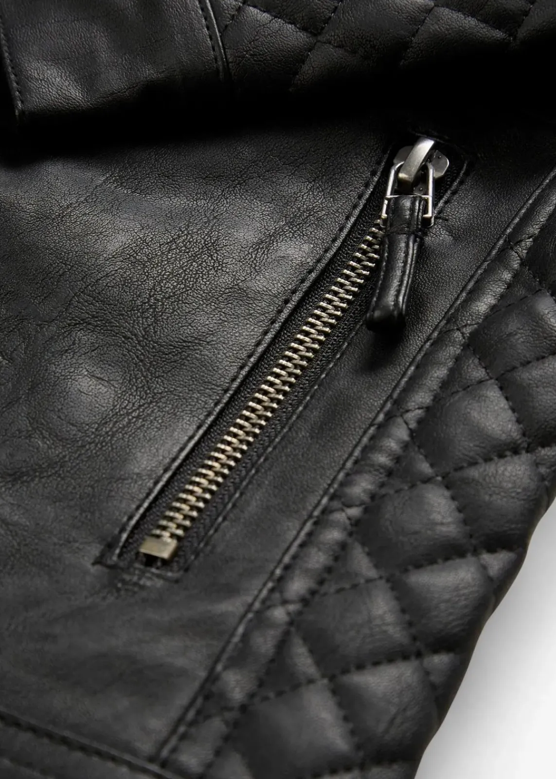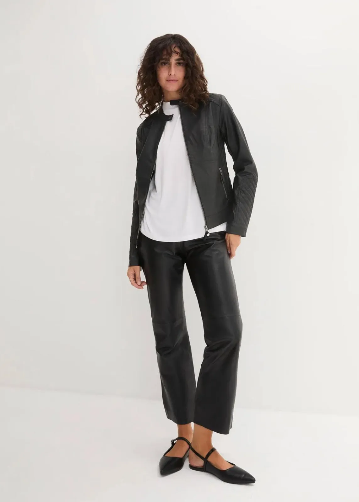 Mit dieser Jacke von bpc erhält Ihr Outfit eine legere Note. Sie ist aus schönem Kunstleder und zeichnet sich durch gesteppte Details an Schultern und Seiten aus. Vorne ist sie mit diversen Ziernähten und zwei Reißverschlusstaschen geschmückt.Die Lederimitat-Jacke hat einen Druckknopf am Ärmelende und einen kleinen Stehkragen mit Druckknopf. Die Übergangsjacke lässt sich per Reißverschluss schließen.