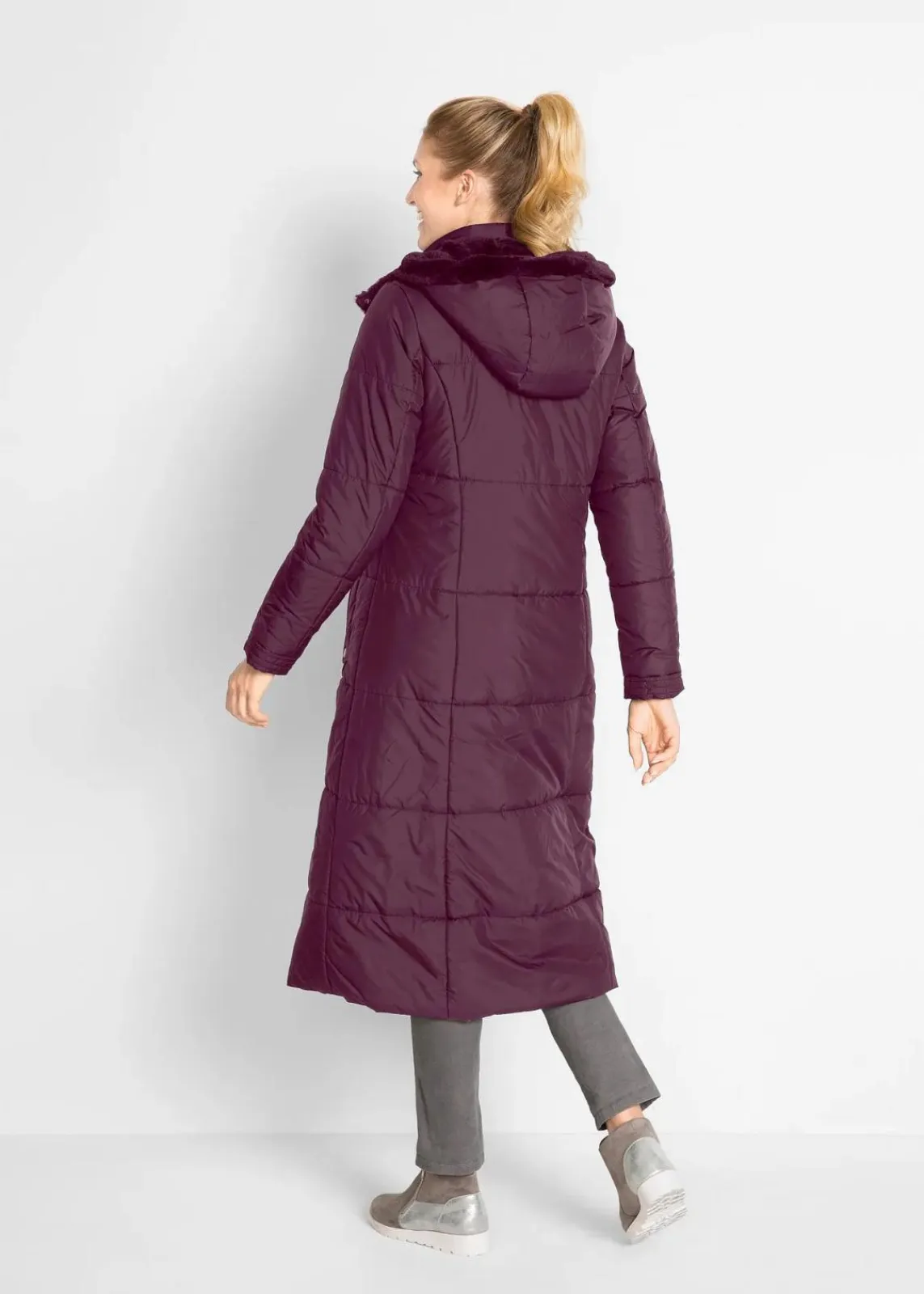 Ansprechender Langmantel mit Steppung und abnehmbarer Kapuze