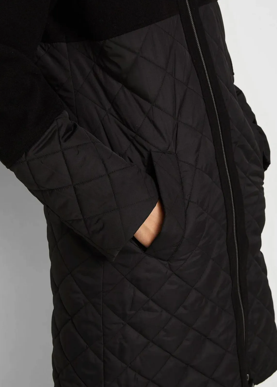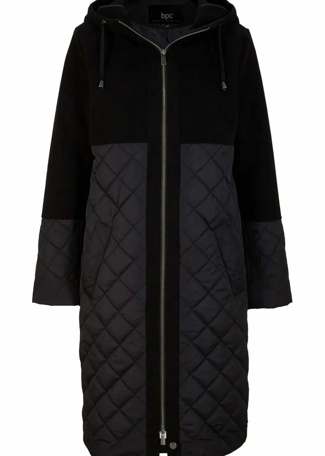 Geschmackvoller Mantel mit Kapuze und geradem Schnitt aus einem ansprechenden Materialmix