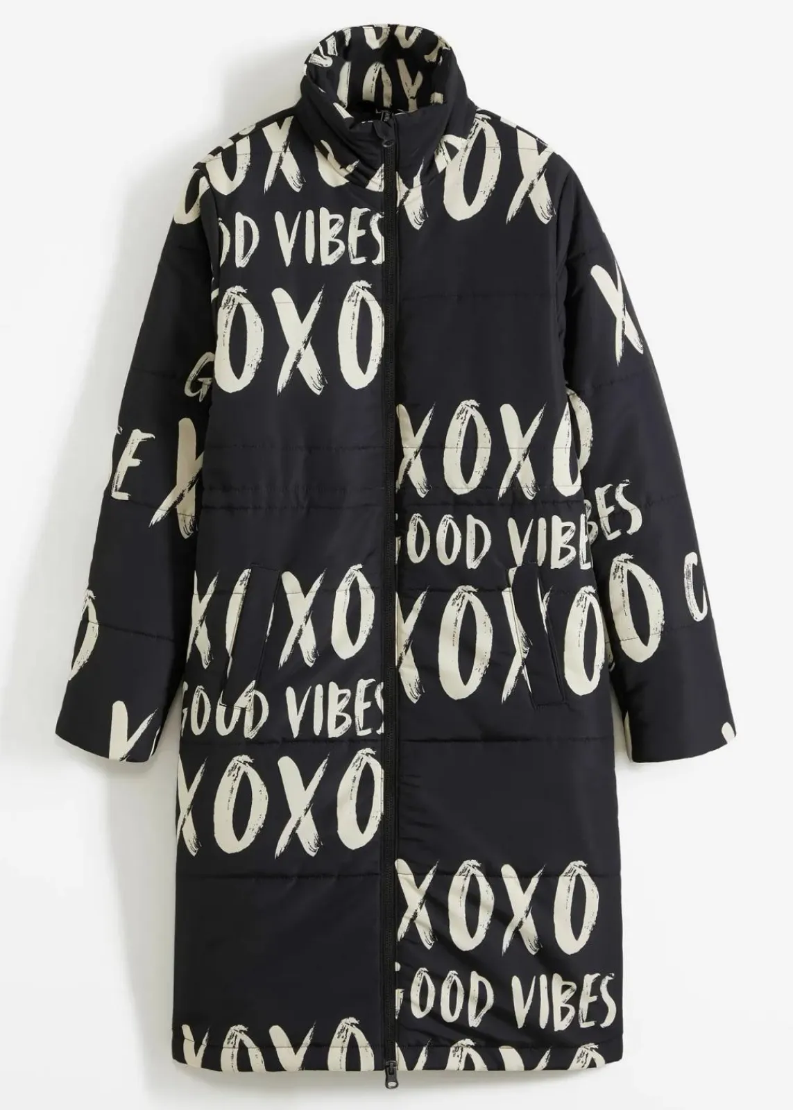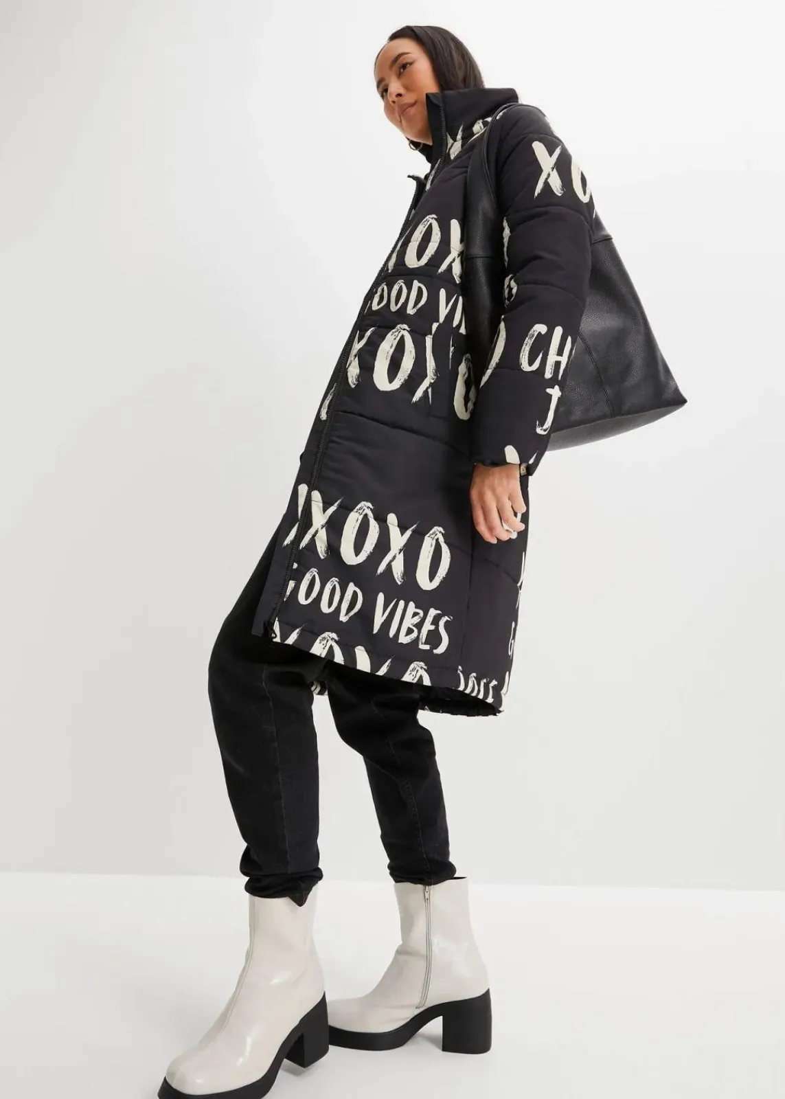 Trendiger, bedruckter Mantel mit Reißverschluss