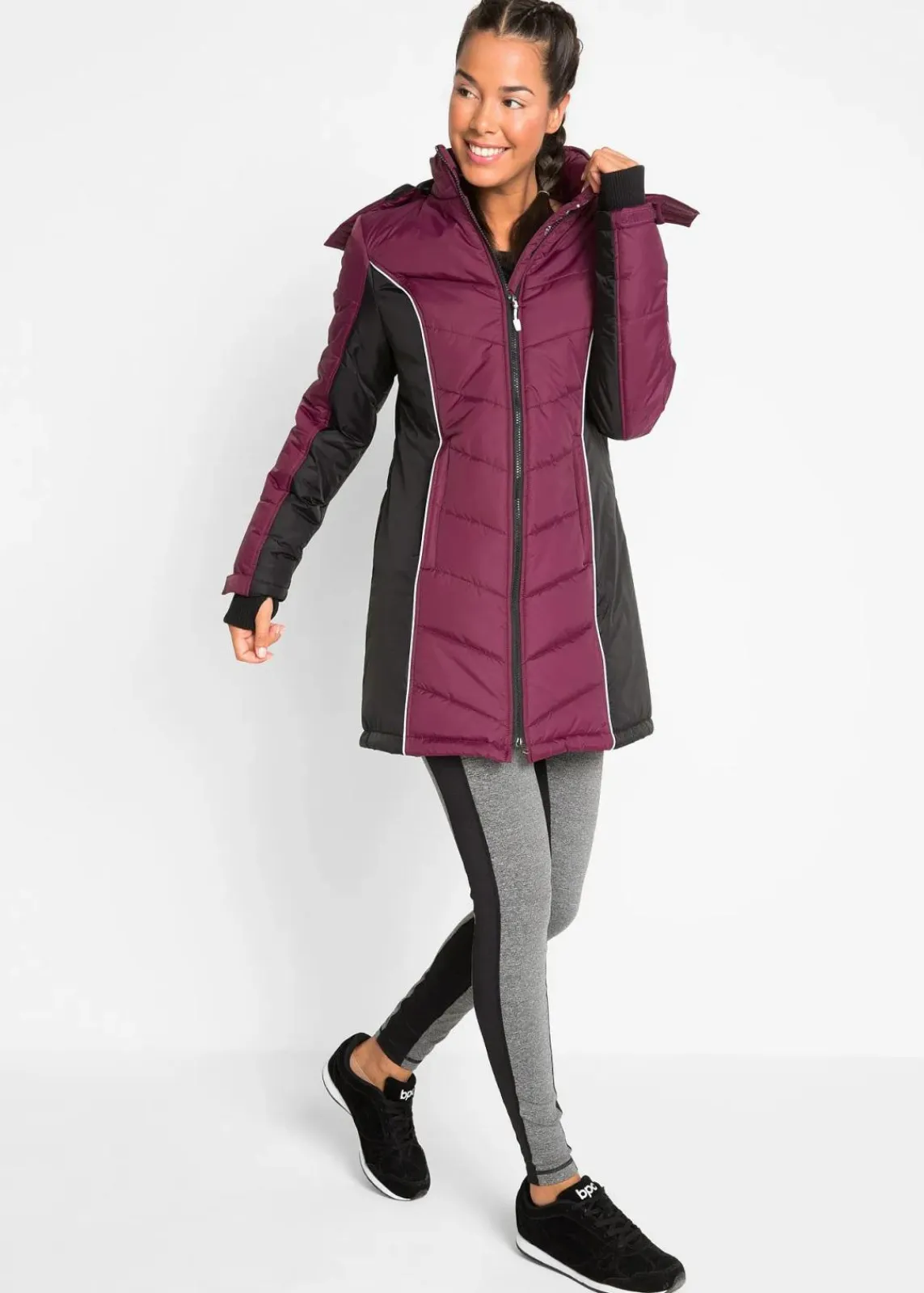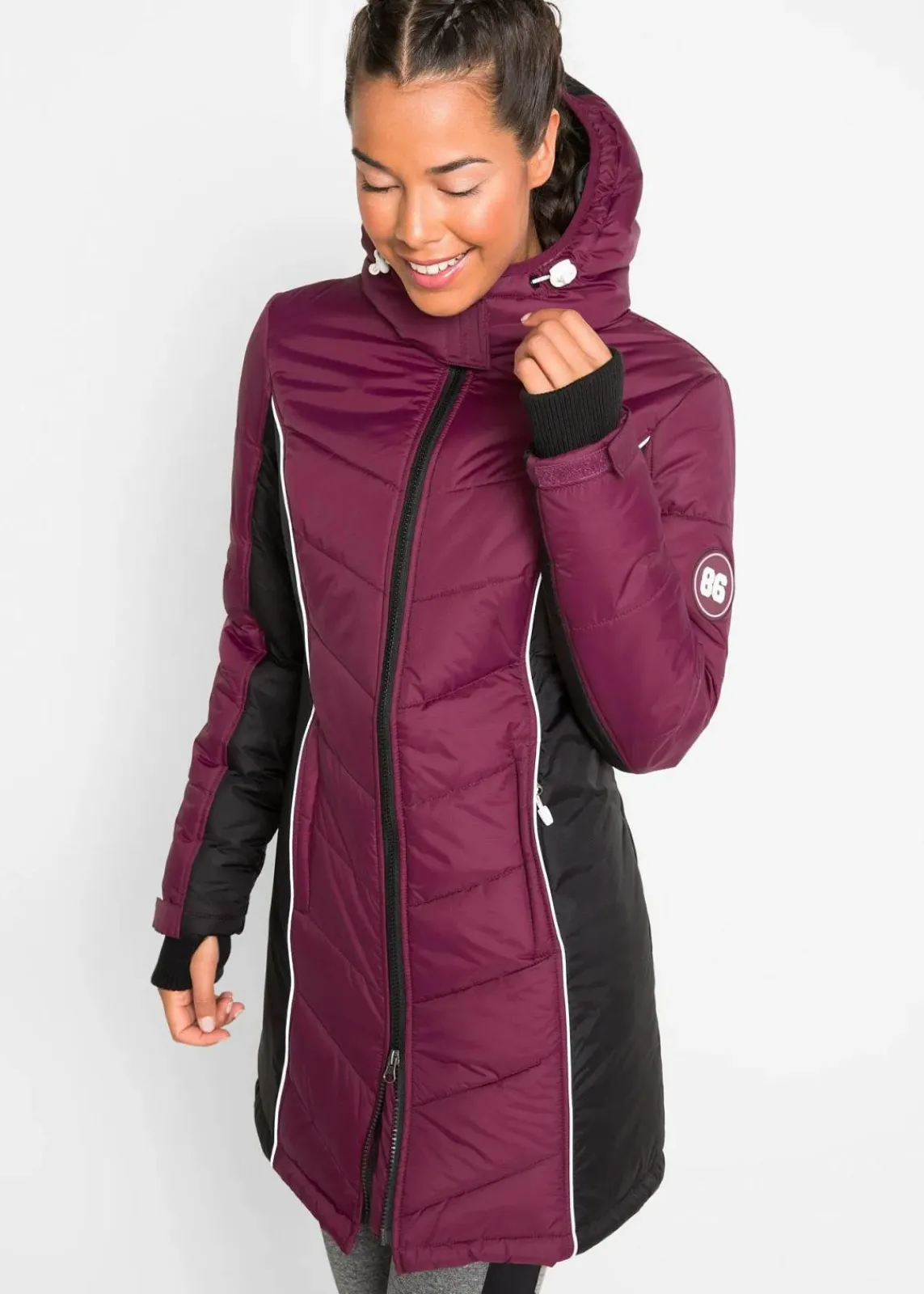 Der figurbetonende Steppmantel aus der aktuellen Kollektion von bpc ist ein modisches Wind-und-Wetter-Basic.Der alltagstaugliche Mantel ist wasserabweisend (Wassersäule 3000 mm), winddicht sowie atmungsaktiv und punktet mit praktischen Details wie einem 2-Wege-Reißverschluss, einer Kapuze, einer Handytasche sowie einer inneren Tasche mit Kabelfunktion. Die kontrastfarbigen Seiten und das Badge auf dem linken Ärmel setzen modische Akzente.