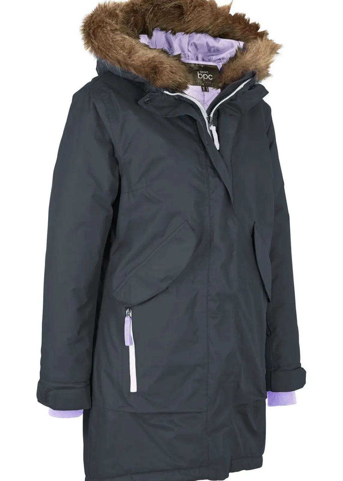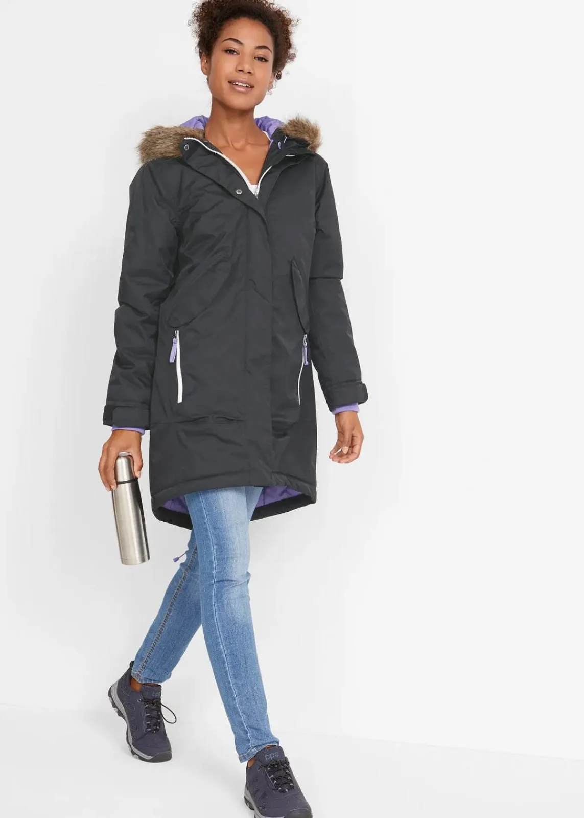 Perfekt bei Wind und Wetter: Der sportliche Funktions-Outdoormantel von bpc beeindruckt durch seine wetterfeste Verarbeitung mit verschweißten Nähten und Thermofütterung. Das Funktionsmaterial ist absolut wasserdicht, winddicht und atmungsaktiv (ca. 3.000 g/m²/24h). Zusätzlichen Schutz vor Kälte und Regen bieten die über eine Kordel in der Weite regulierbare Kapuze mit abnehmbarem Fellimitat sowie der 2-Wege-Reißverschluss mit Kinnschutz.Mit zwei wasserdichten Reißverschlusstaschen und zwei Pattentaschen vorne sowie Mesh-Tasche und Reißverschlusstasche inklusive Kabelführung innen verfügt der Funktionsmantel über reichlich Stauraum. Die Weite lässt sich über eine Kordel an Saum und Taille und Klettverschlüssen an den Ärmeln regulieren.