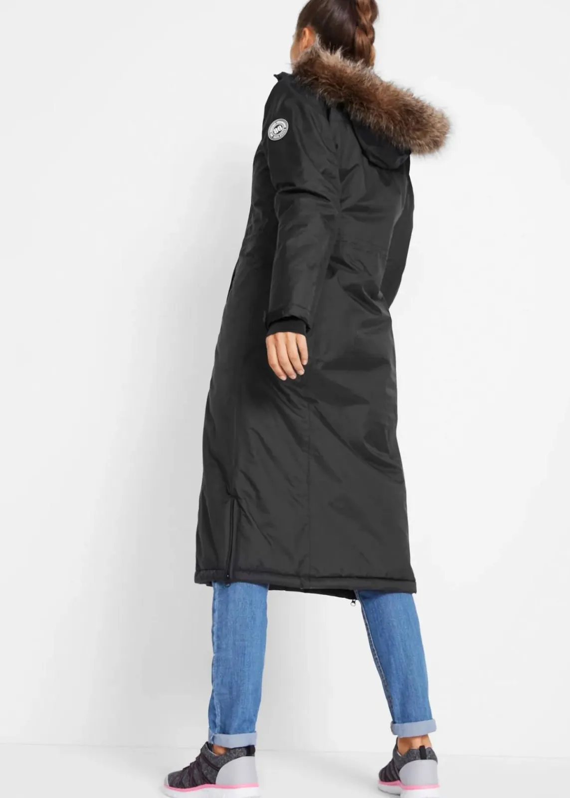Innentasche mit Kabelfunktion, Fell und Kapuze sind abnehmbar, Daumenlöcher, 2-Wege-Reißverschluss mit Kinnschutz, weitenregulierbare Taille, Wassersäule 3000mm, Länge in Gr. 42 ca. 120 cm.