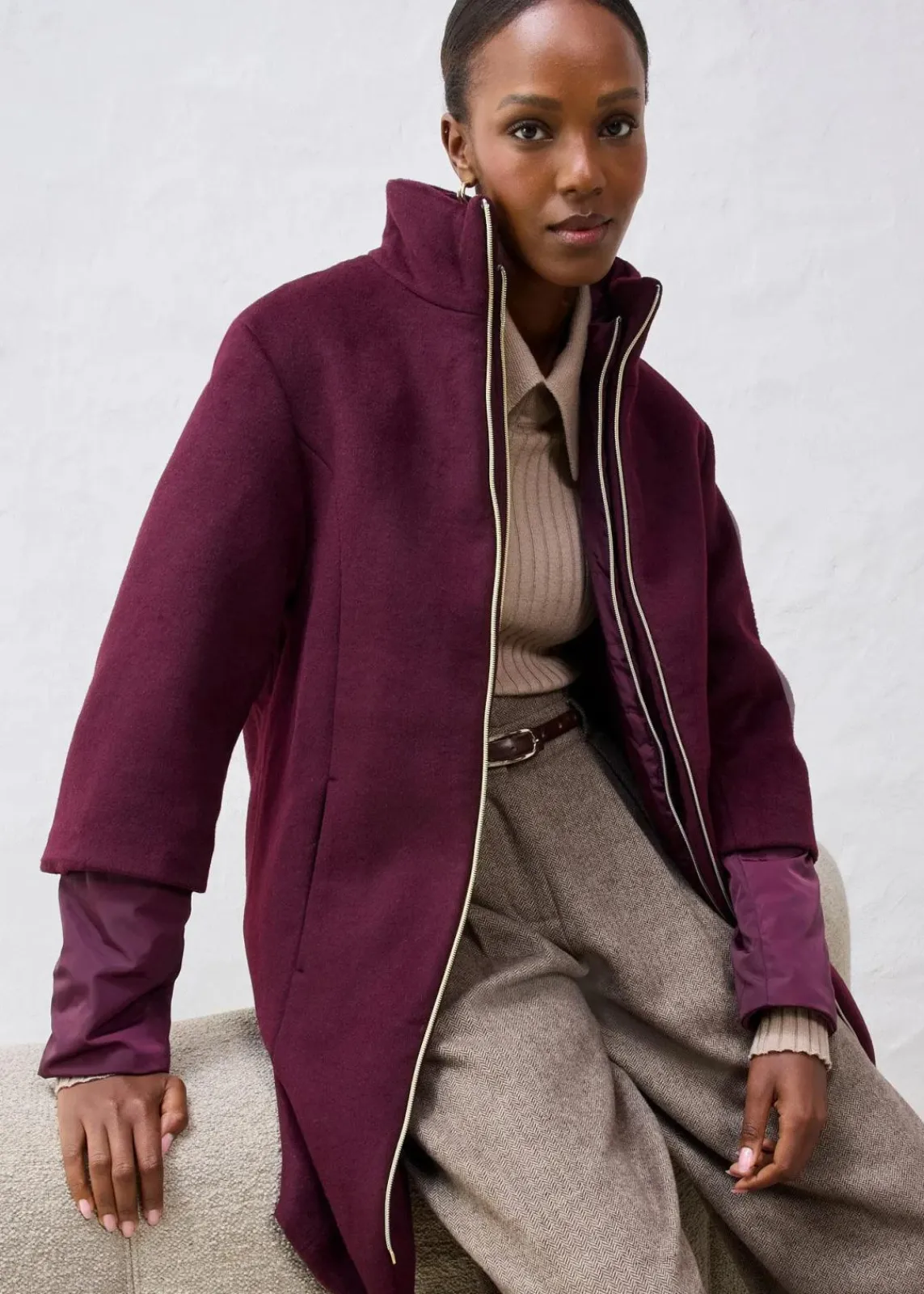 elegant und sportlich zu gleich, Wollmantel und Daunen -Innenjacke (2tlg), beides einzel tragbar
