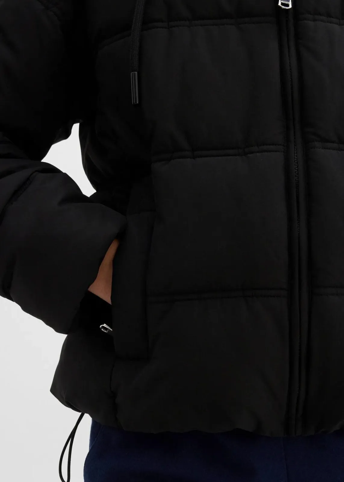 Kurze Steppjacke mit Kapuze und seitlichen Taschen