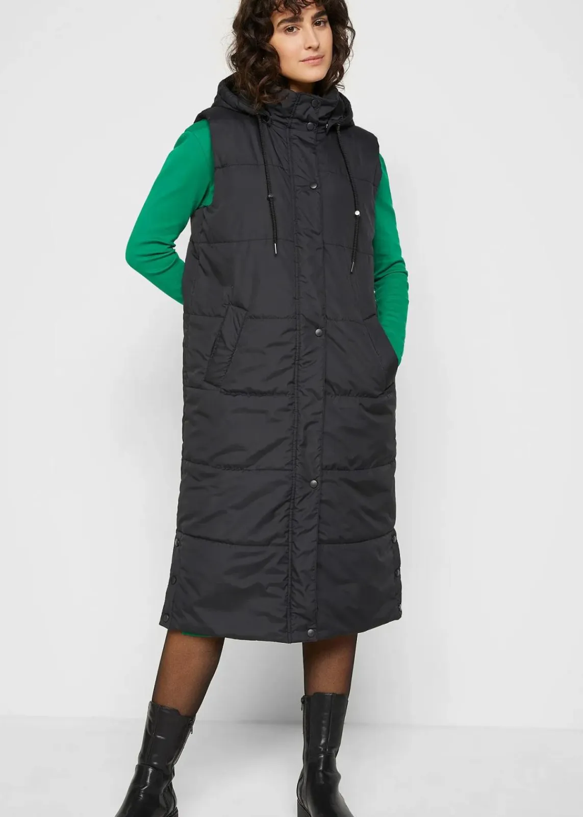 Lange Steppweste mit Reißverschluss und Kapuze
