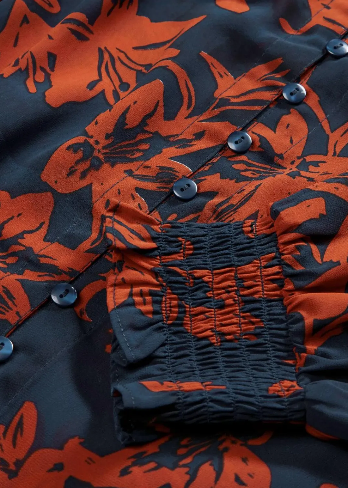 Leicht Taillierte Bluse mit kleinem Stehkragen und 3/4-Ärmeln
