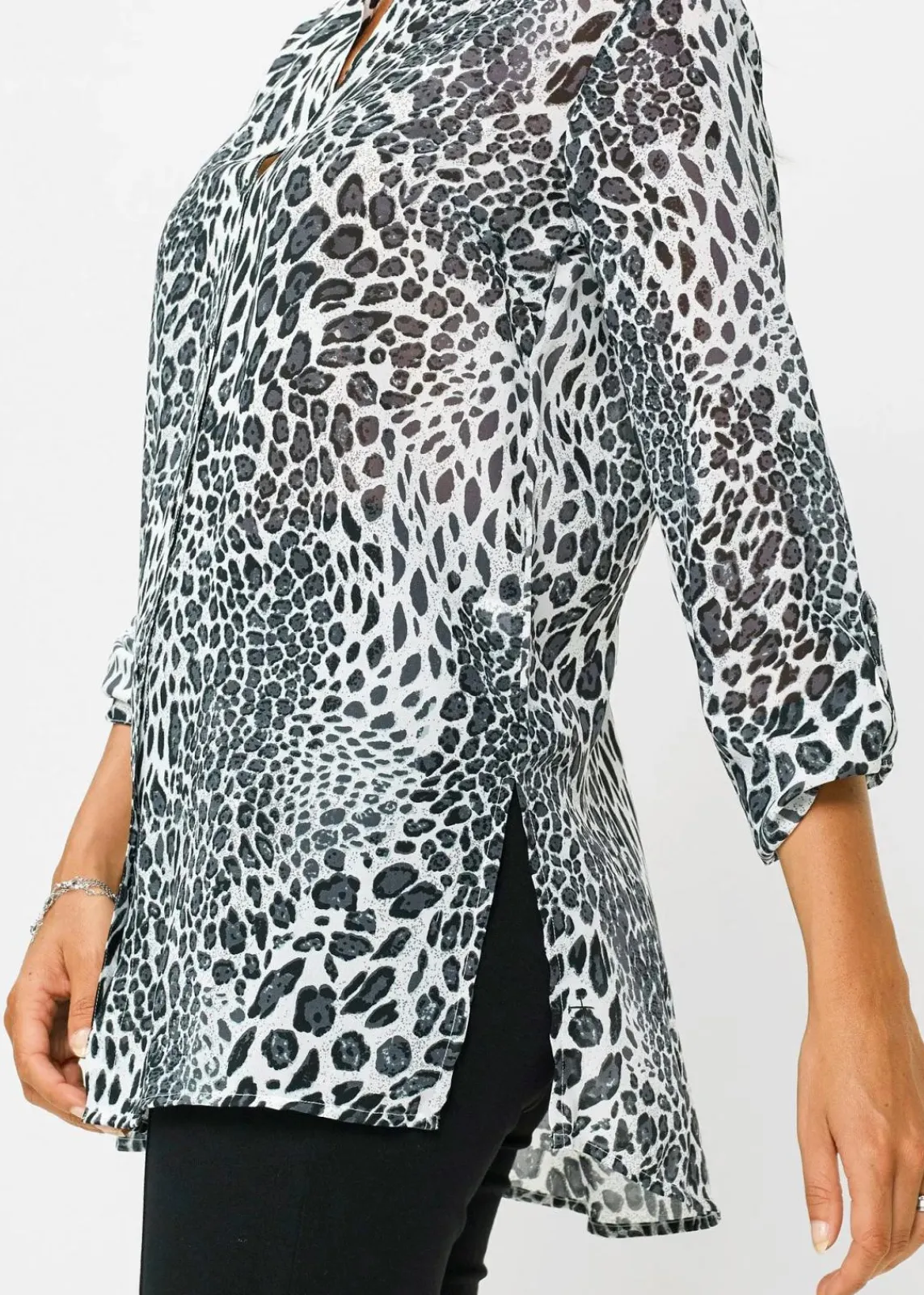 Transparente Tunika mit schönem Animal-Print, lange Form mit Seitenschlitzen, Länge von ca. 73 cm (Gr.36) bis ca. 82 cm (Gr.54), maschinenwaschbar,