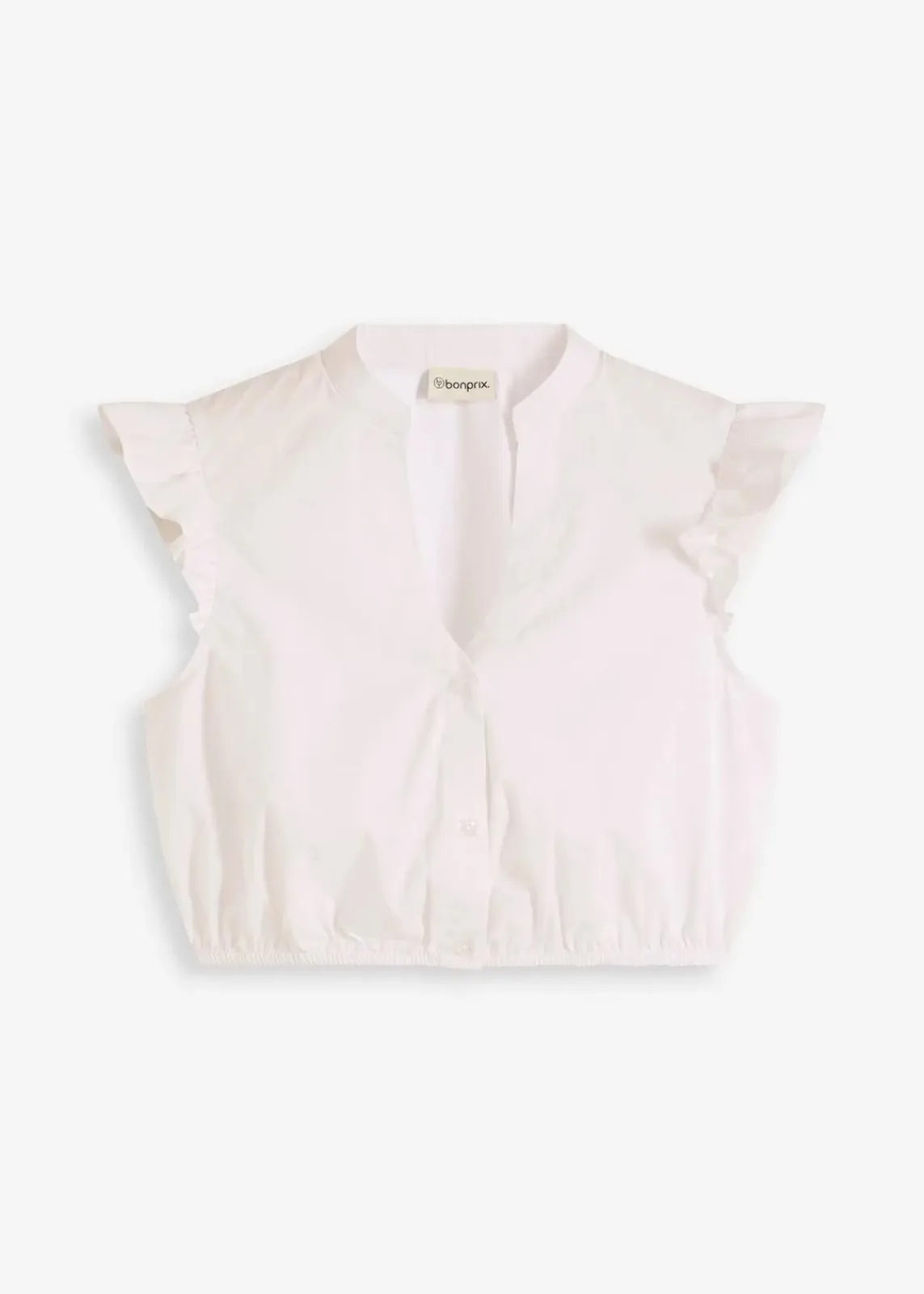 Modern und feminin: Dirndlbluse mit Stehkragen und Rüschen-Ärmel
