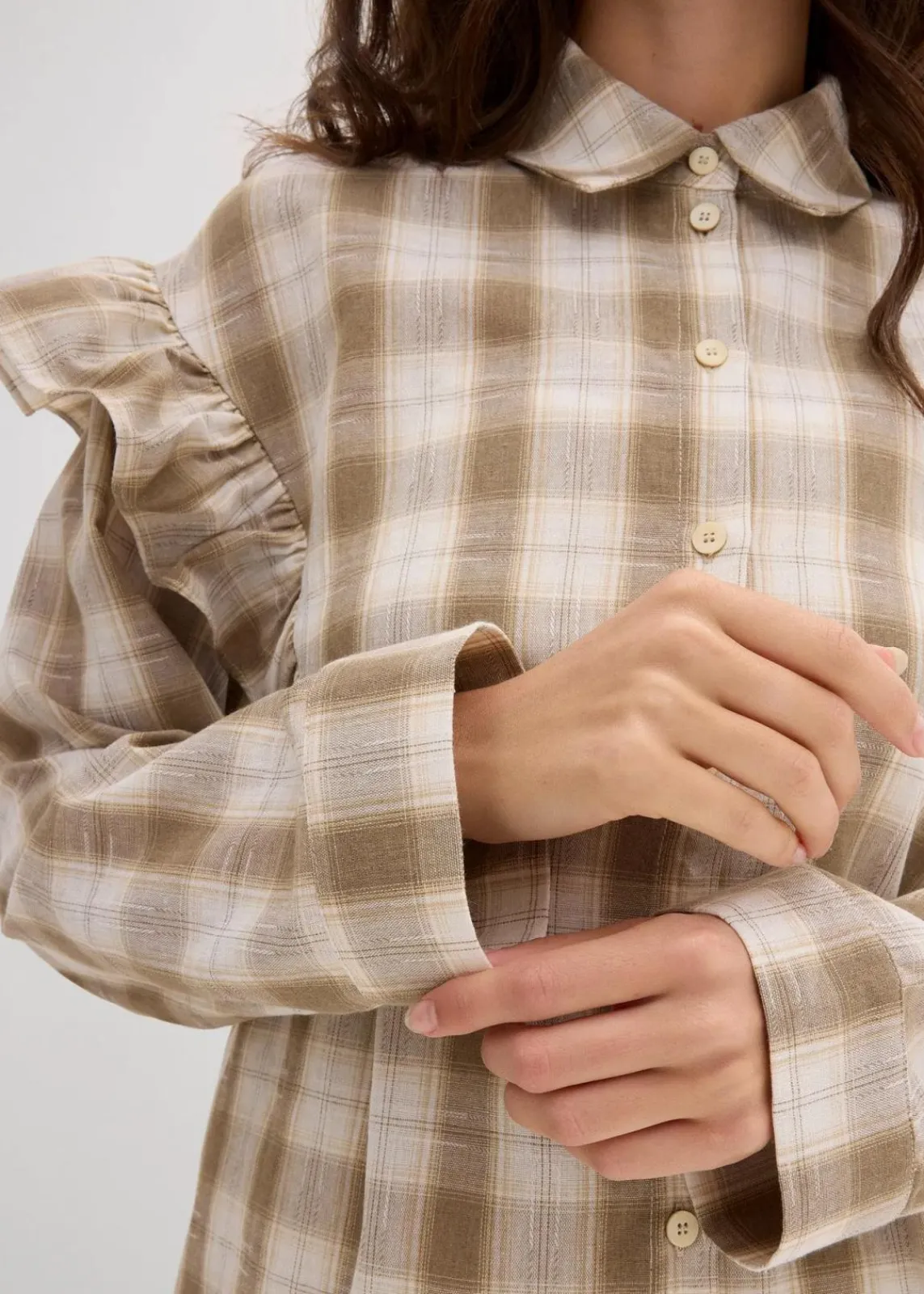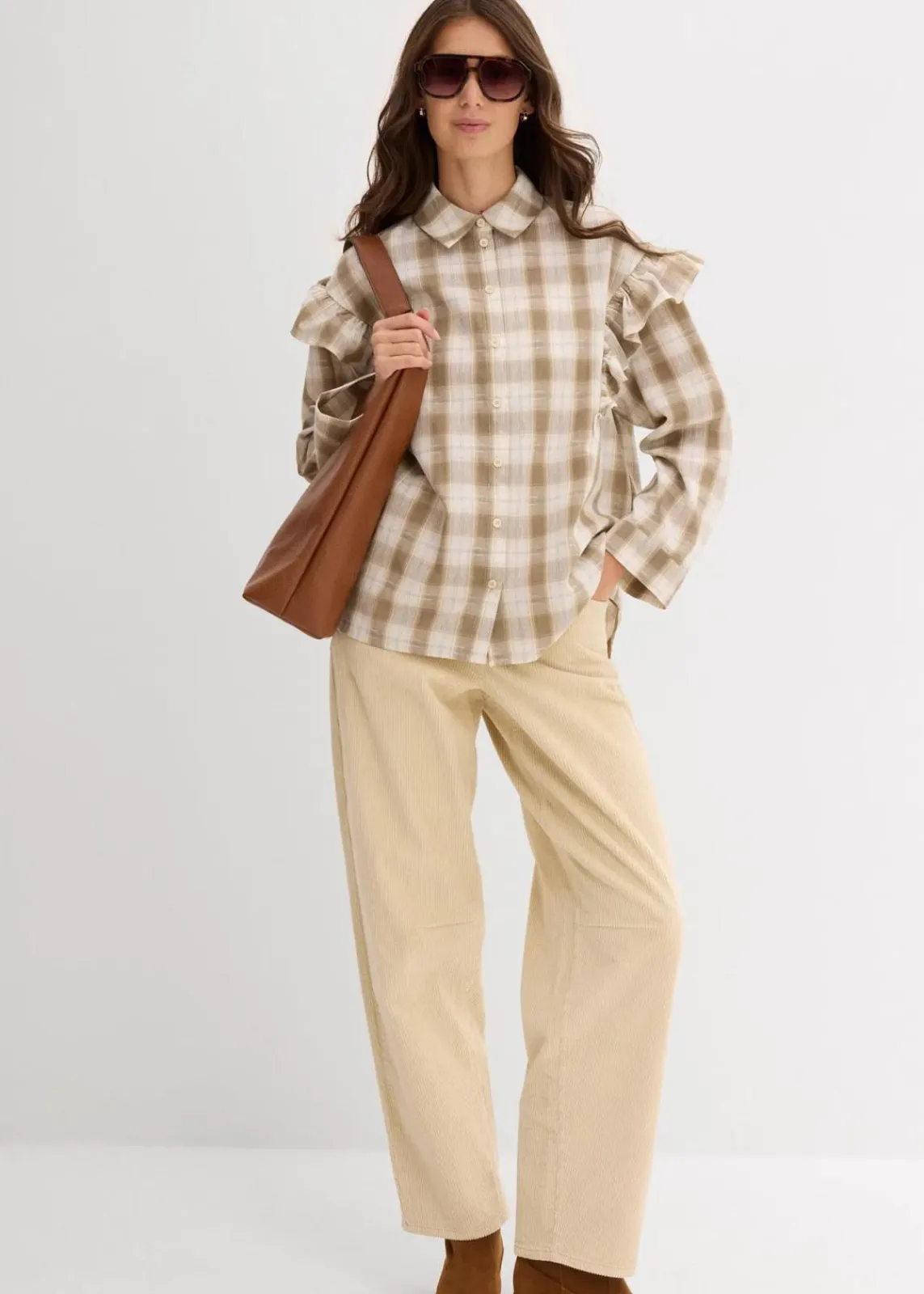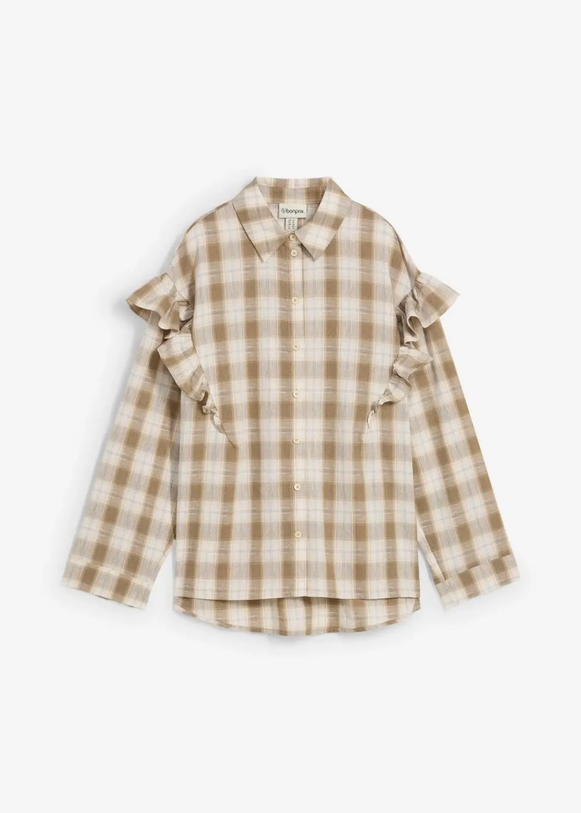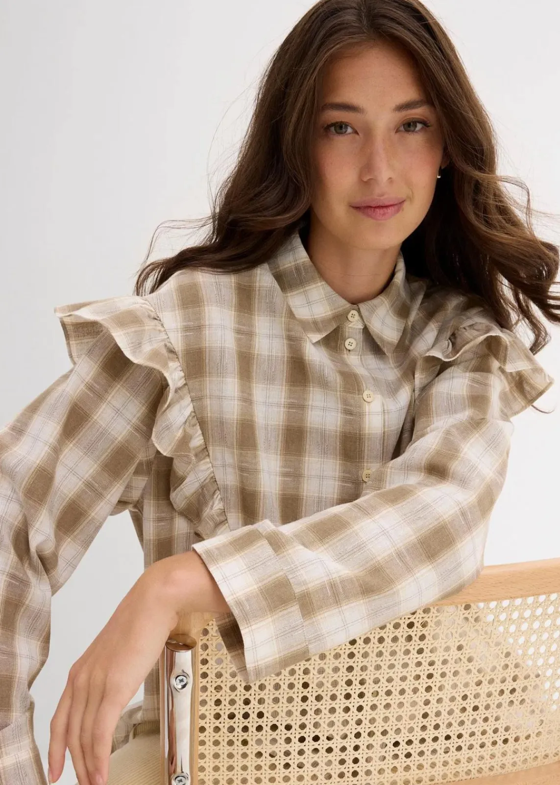 Modische Hemdbluse mit Volants am Ärmel, kariert