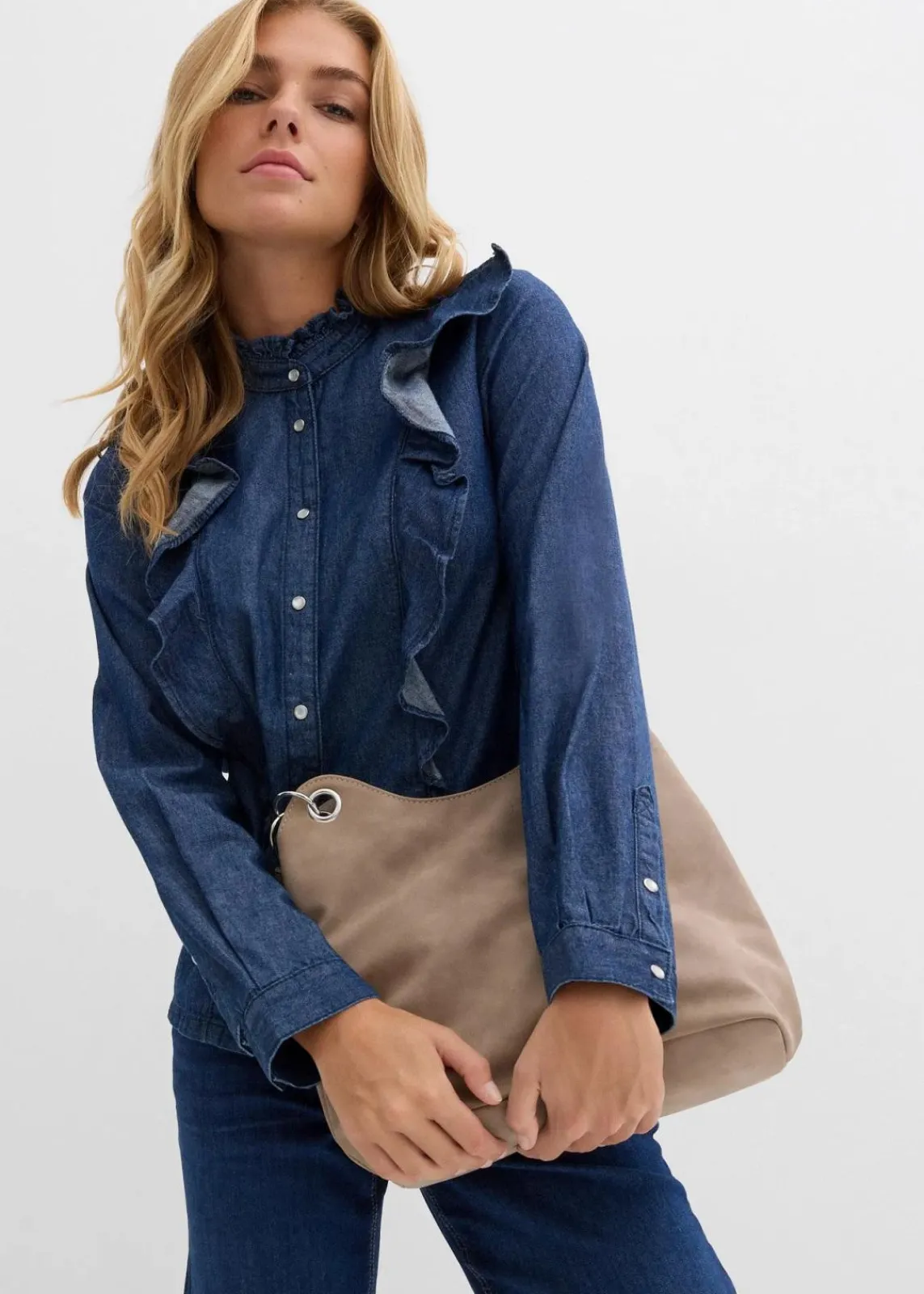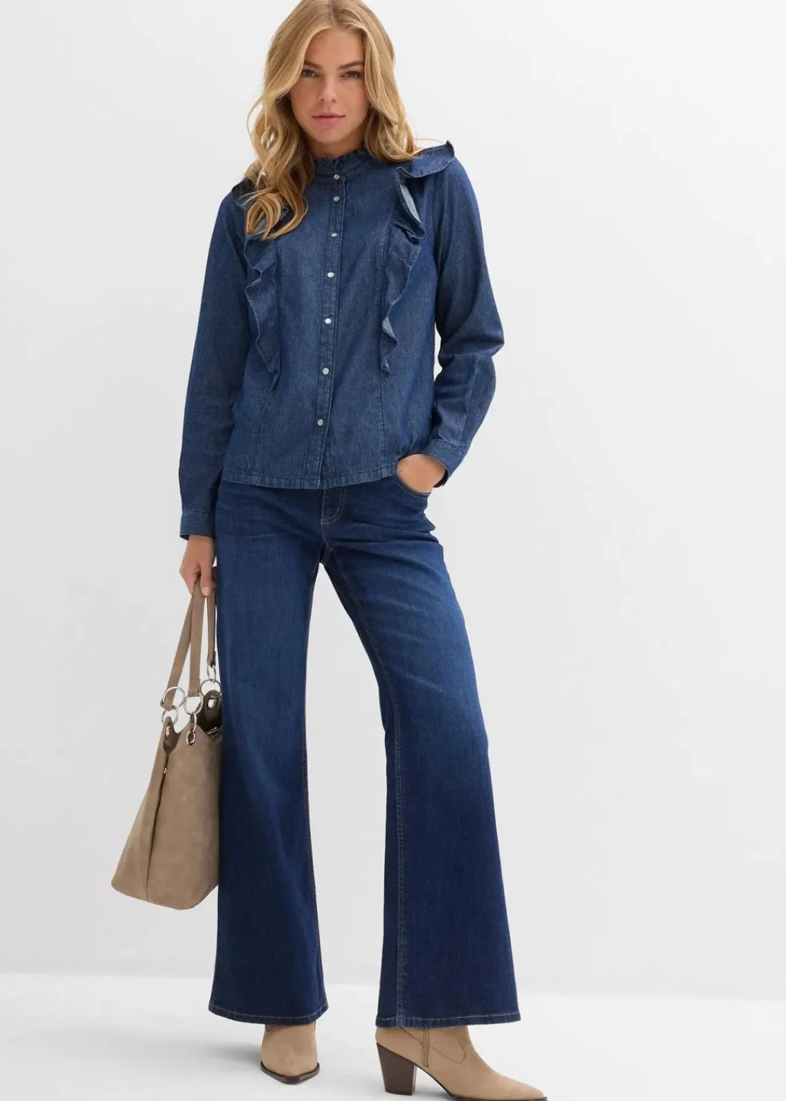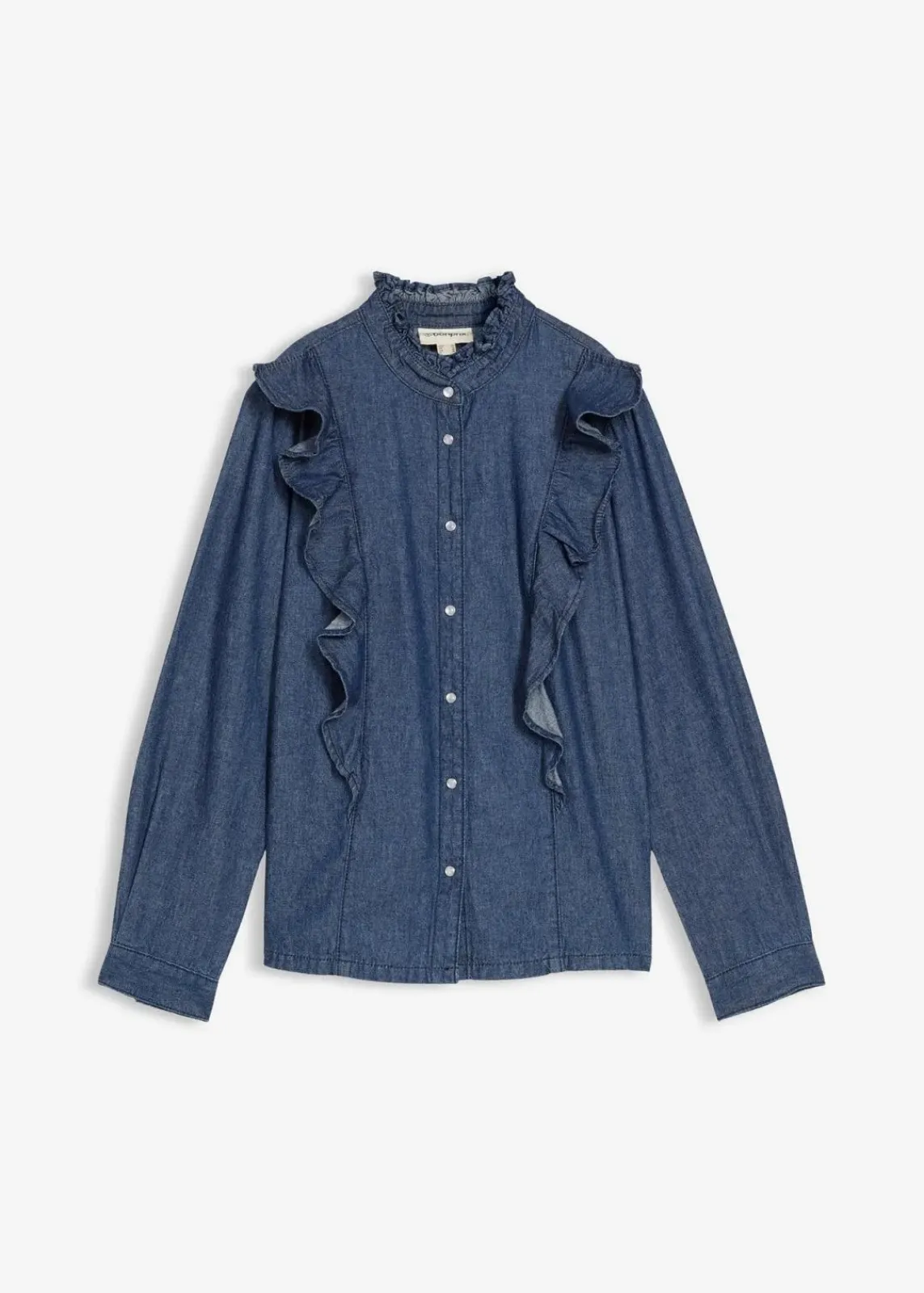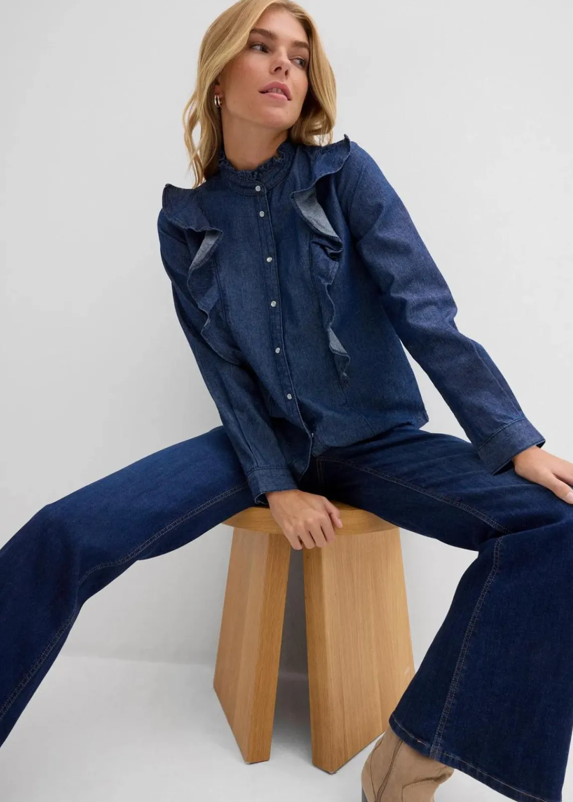 Jeansbluse mit Volants, aus reiner Baumwolle