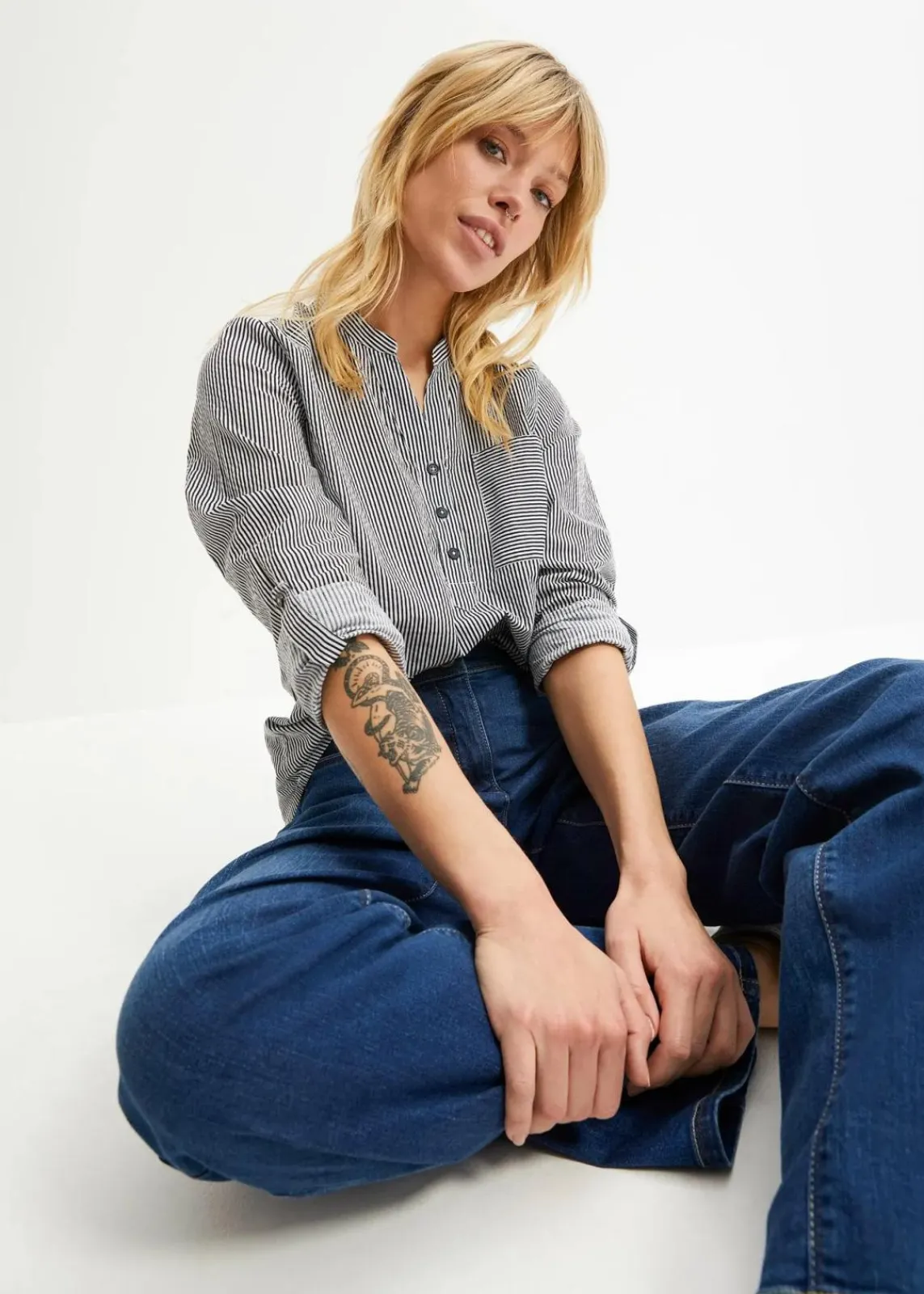 Mit dieser langärmligen Tunika kreieren Fashionistas legere Looks für die Freizeit. Ein kleiner Stehkragen und eine aufgesetzte Brusttasche sorgen für eine moderne Note. Die Turn-up-Funktion ermöglicht das Fixieren der gekrempelten Ärmel mit Riegel und Knopf.Die Tunika begeistert mit einer kurzen Knopfleiste am Ausschnitt und einem figurumspielenden Schnitt mit abgerundetem Saum.