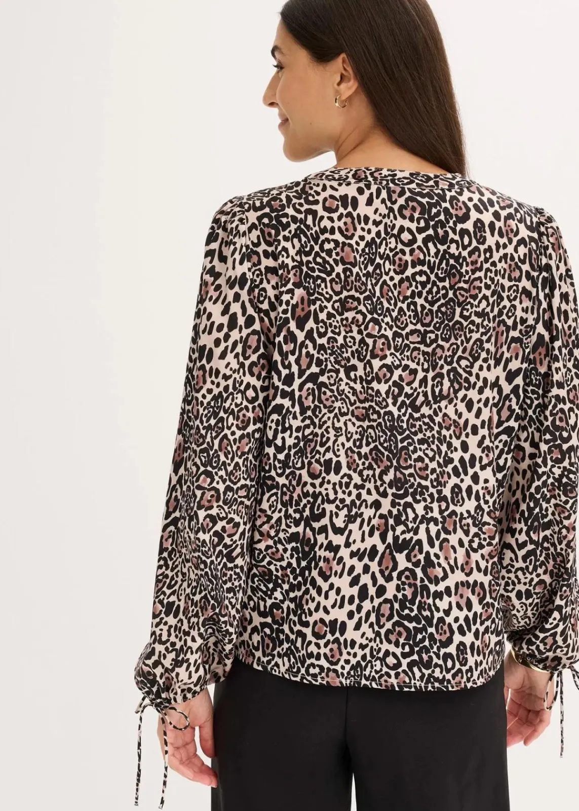 bedruckte Tunikabluse mit Bindeband vorne am Ausschnitt